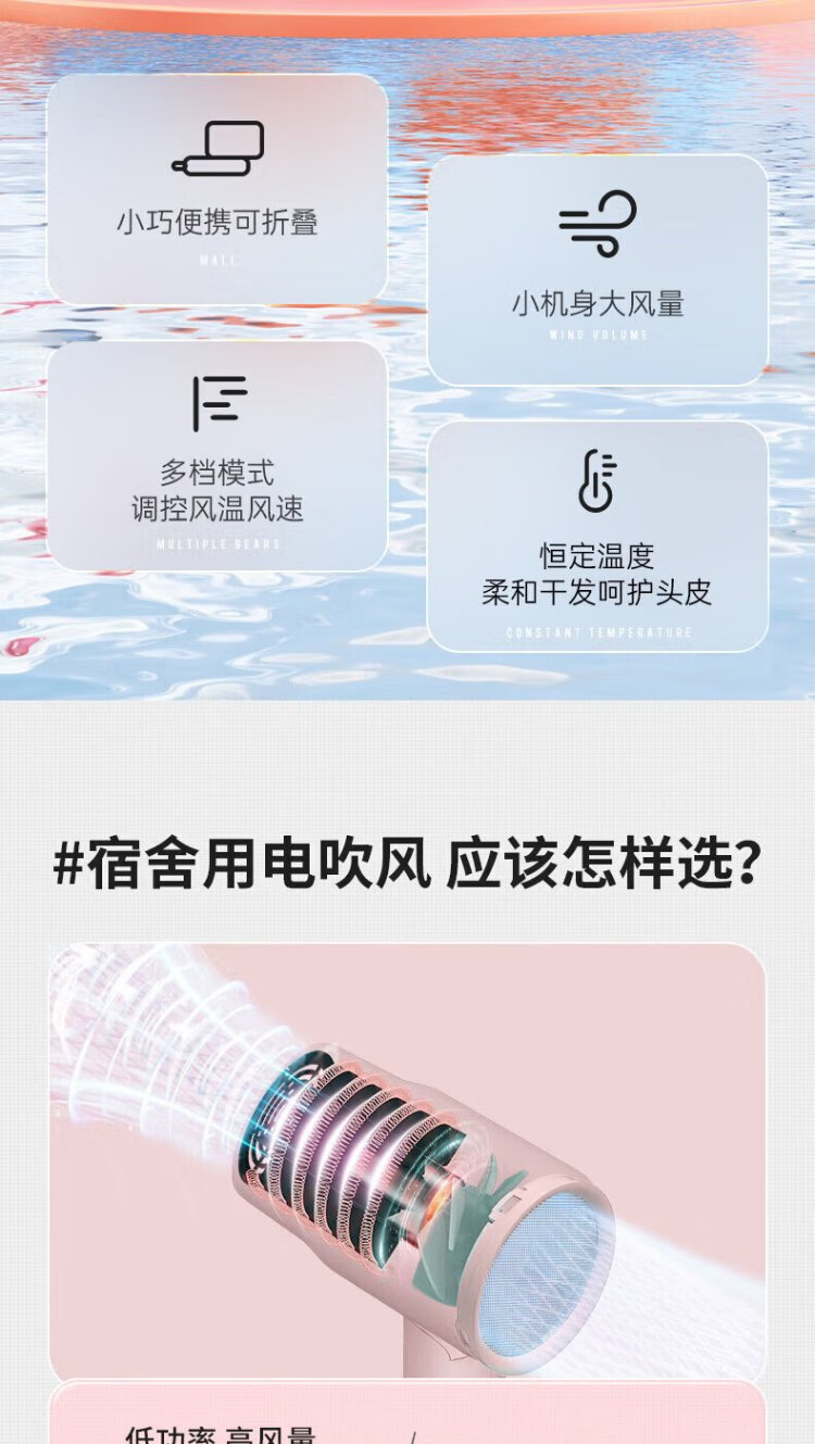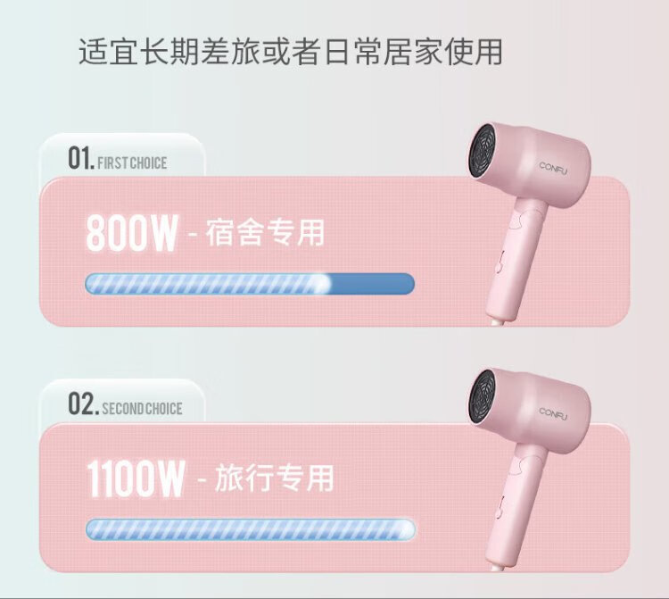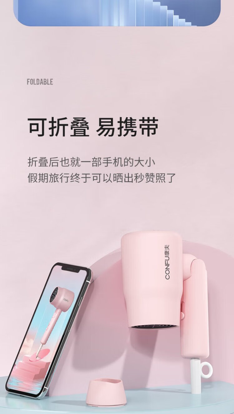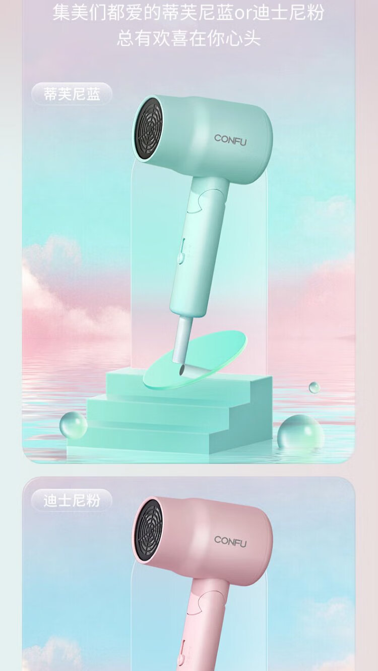CONFU hair dryer for home use in student dormitories, low power, foldable, quick-drying hair care, hot and cold air, small portable, mini hair dryer, foldable low power 800W KF-6328 Tiffany Blue