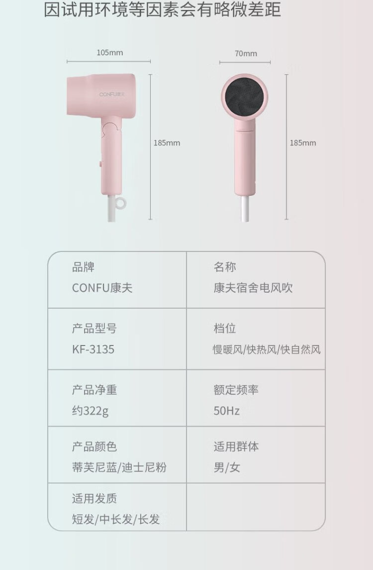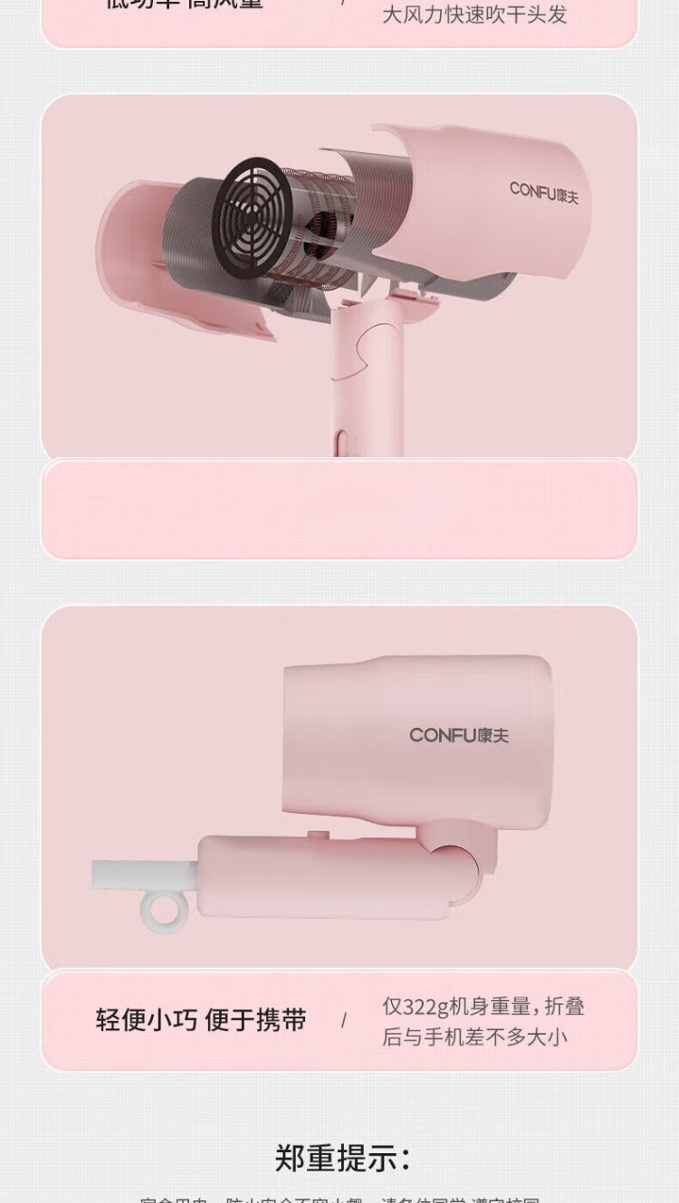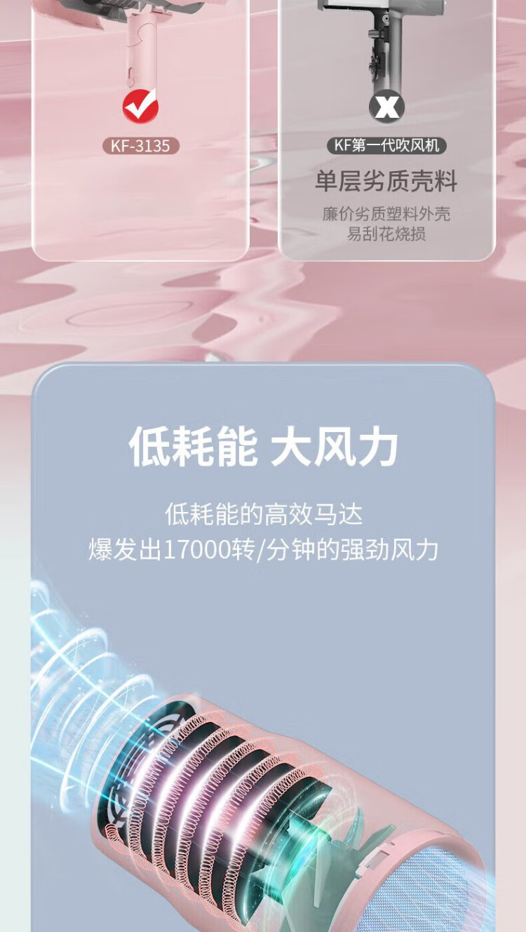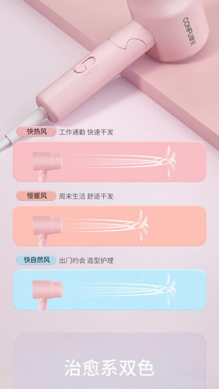 CONFU hair dryer for home use in student dormitories, low power, foldable, quick-drying hair care, hot and cold air, small portable, mini hair dryer, foldable low power 800W KF-6328 Tiffany Blue