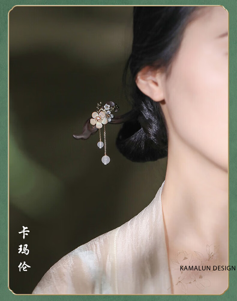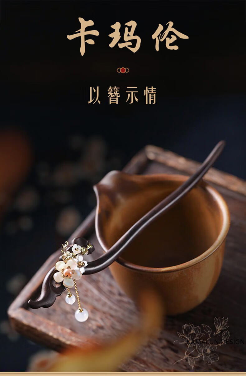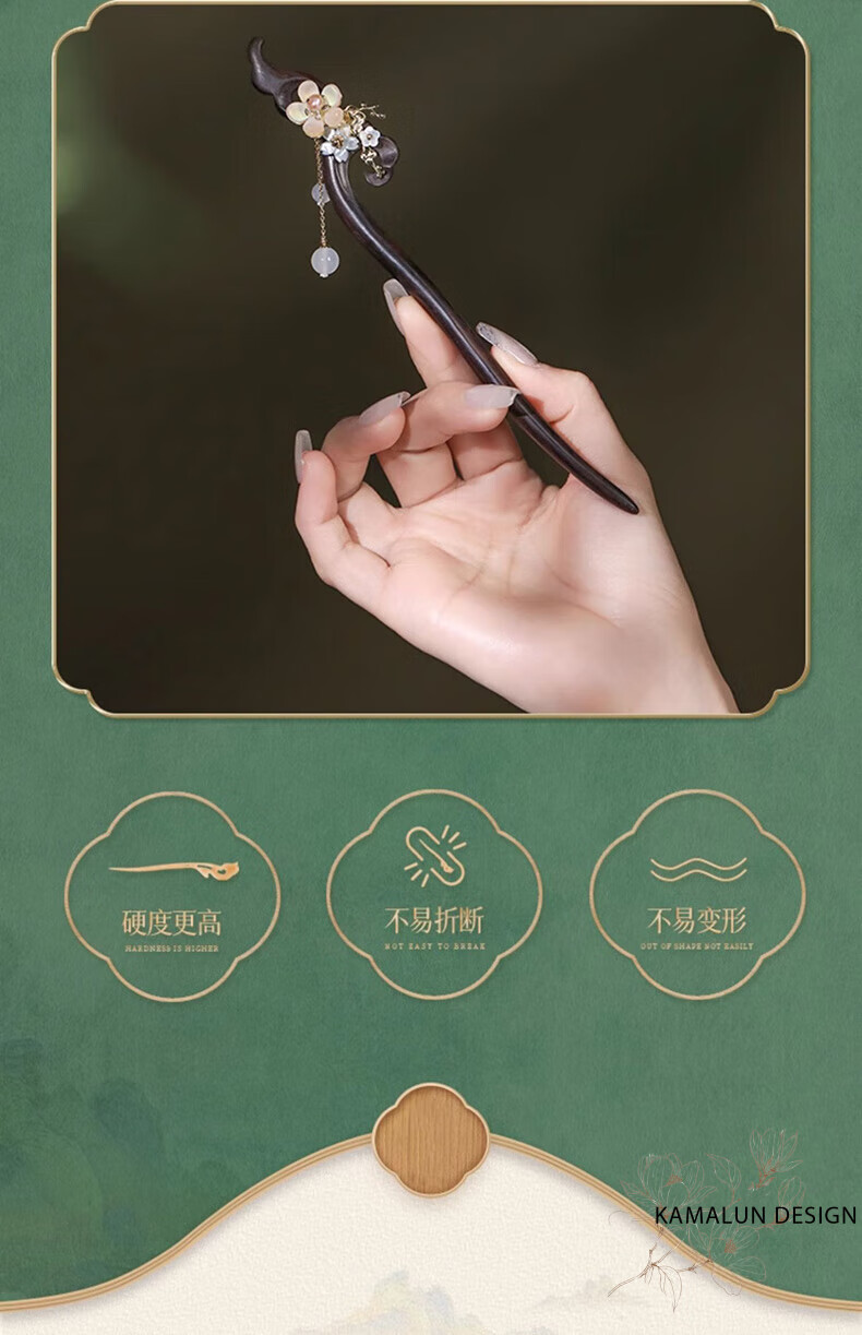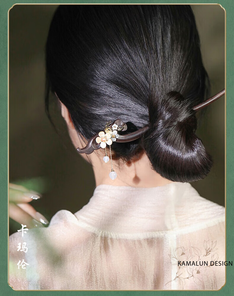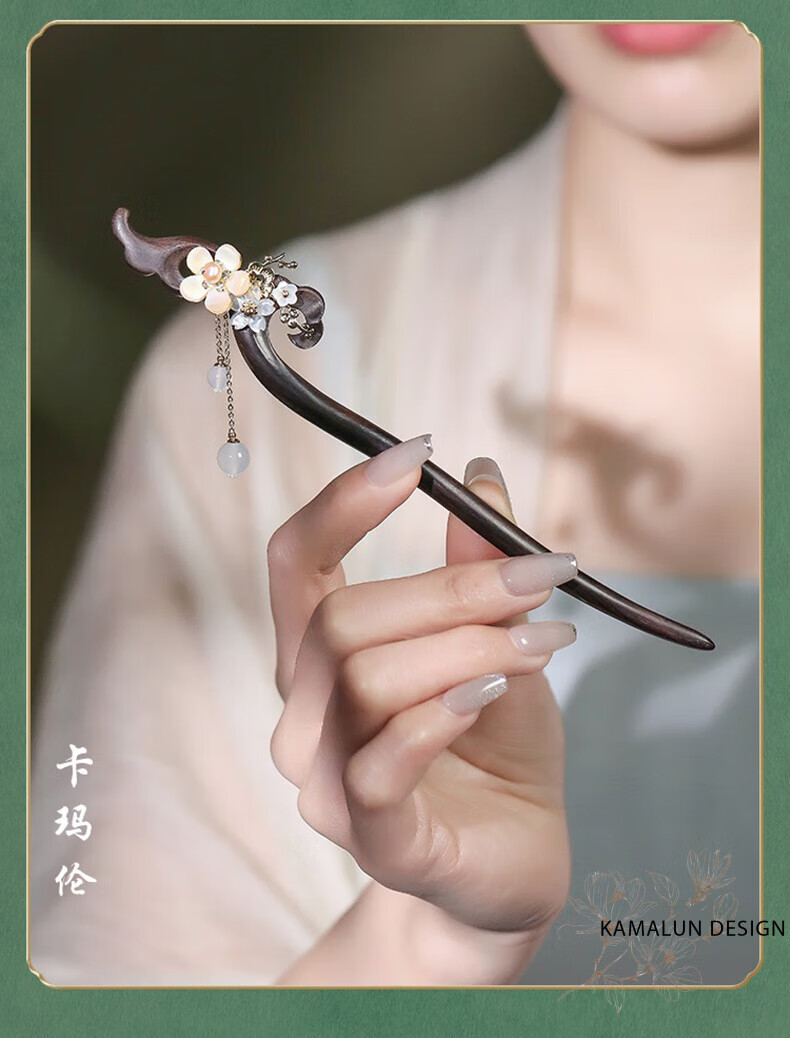 Kamalun (KAMALUN) Ebony Wood Hairpin New Chinese Style Hairpin Women's Ancient Style Style Wooden Hairpin High-end Updo Hair Accessory for Girlfriend Qingguangli Hairpin + Brand Gift Box