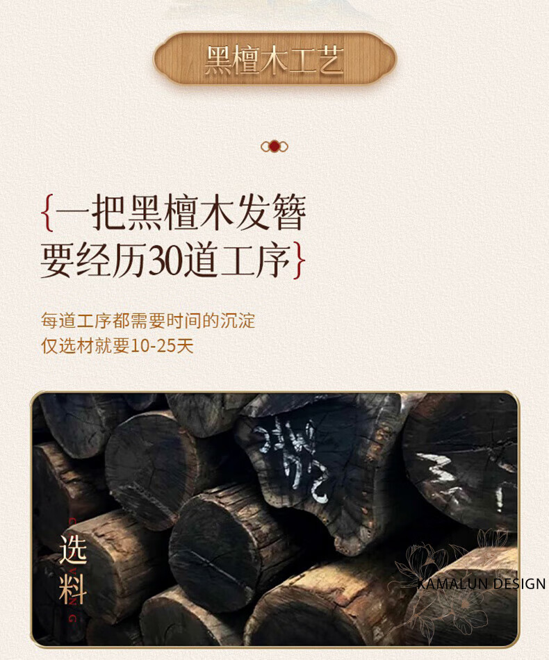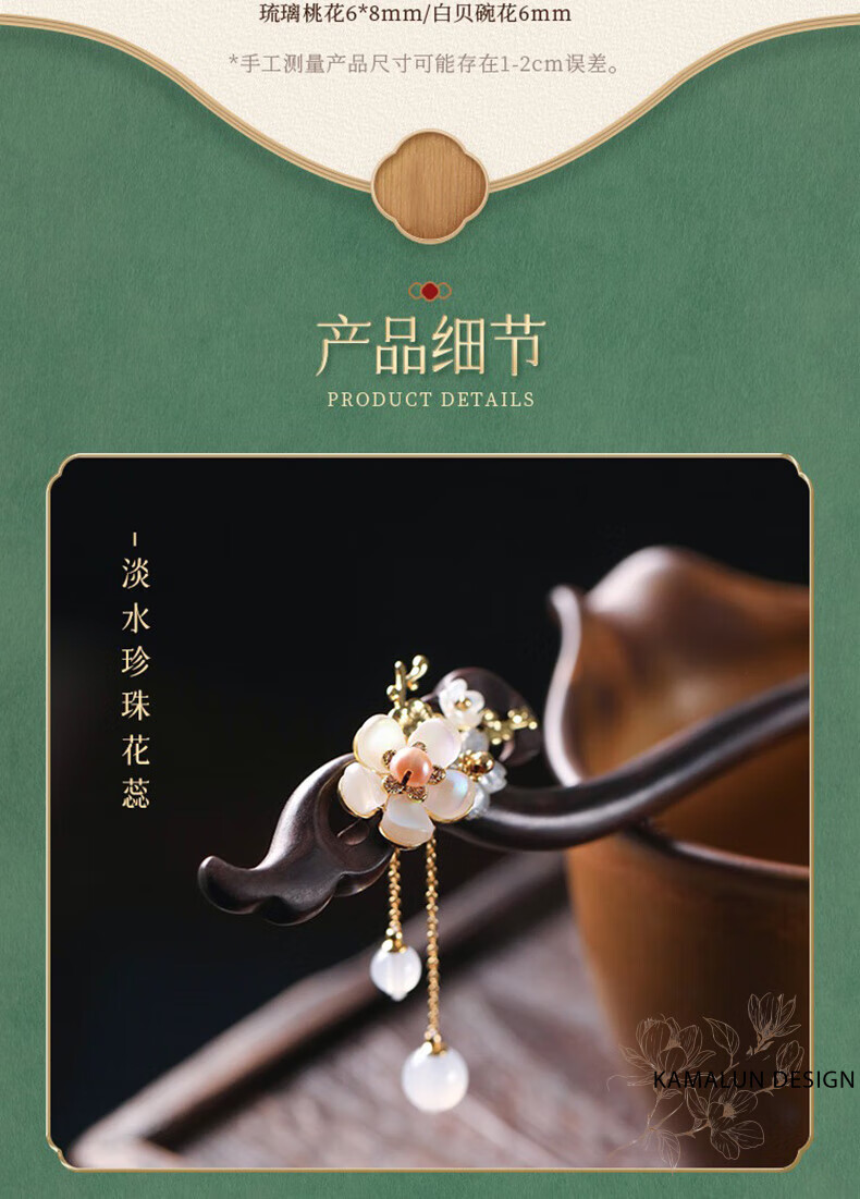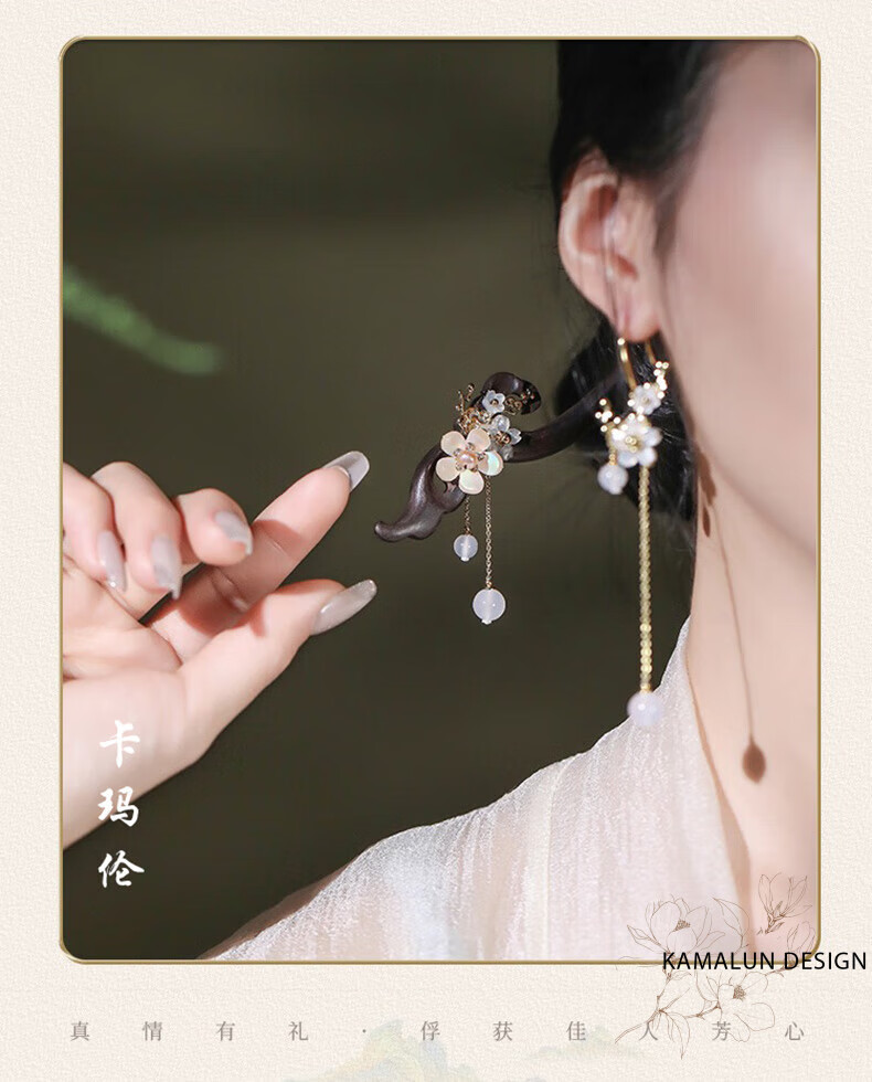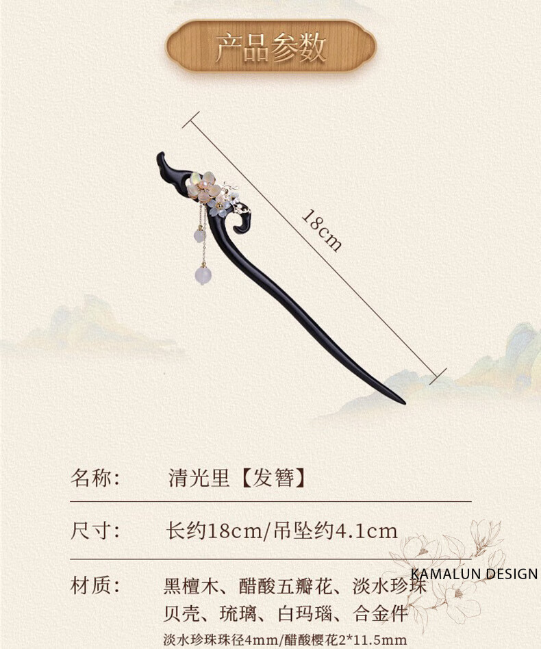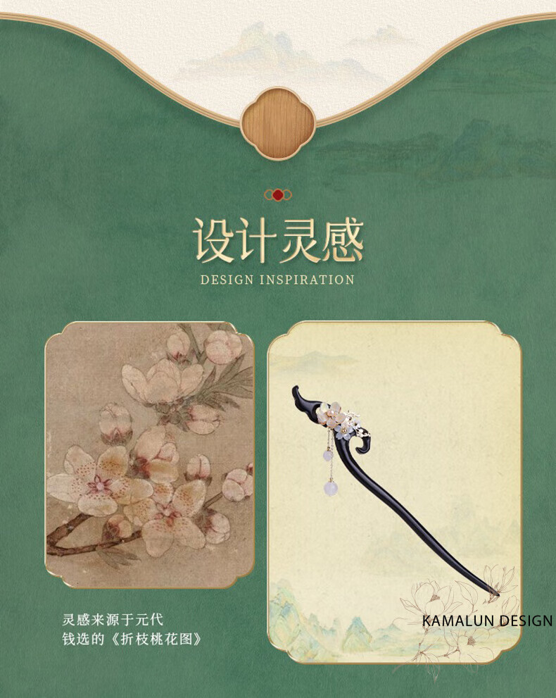 Kamalun (KAMALUN) Ebony Wood Hairpin New Chinese Style Hairpin Women's Ancient Style Style Wooden Hairpin High-end Updo Hair Accessory for Girlfriend Qingguangli Hairpin + Brand Gift Box