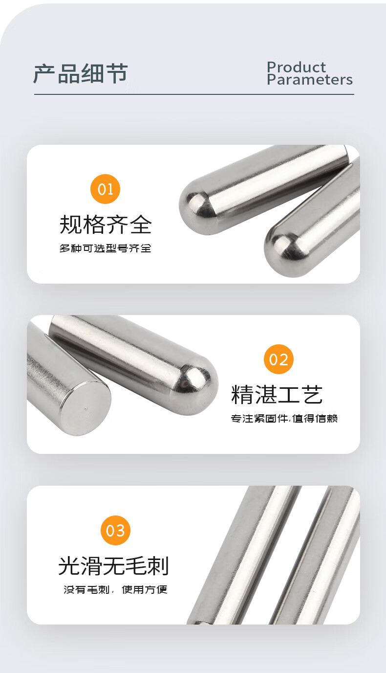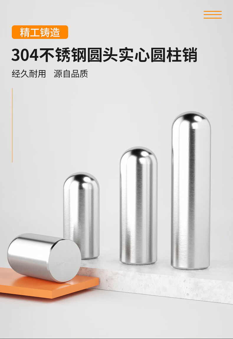 Creaby304 stainless steel pin solid cylindrical pin round head positioning pin shaft thimble optical shaft round rod M1x10 (50 pieces)
