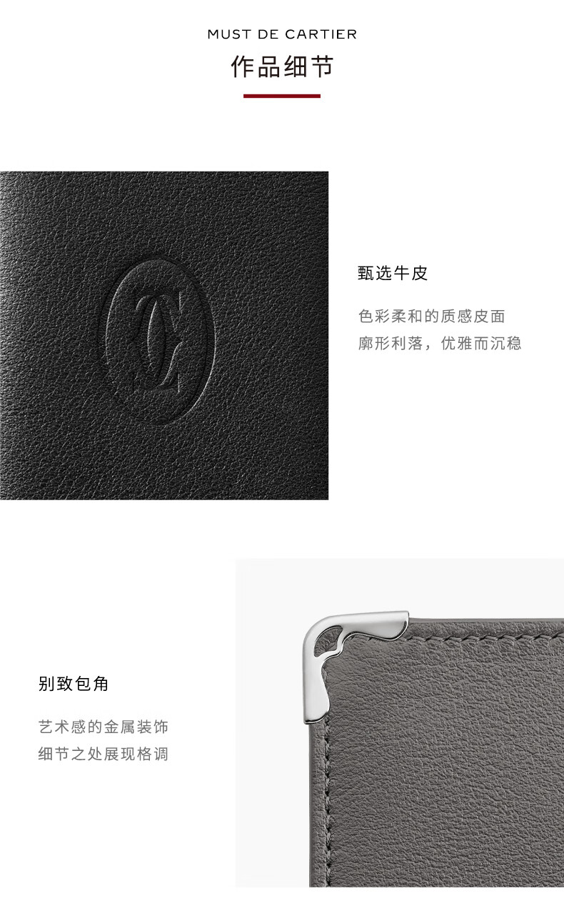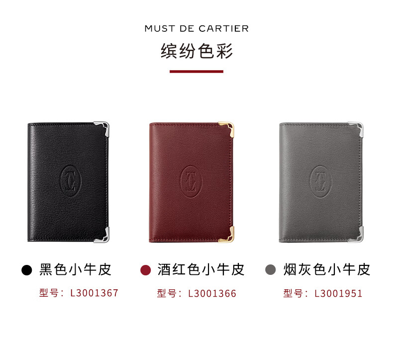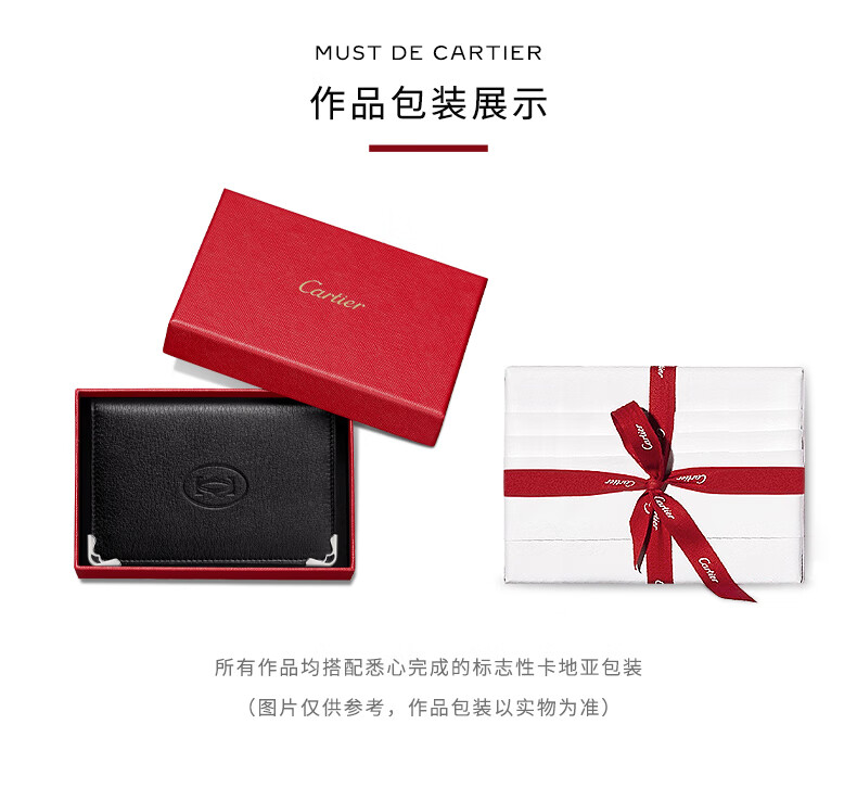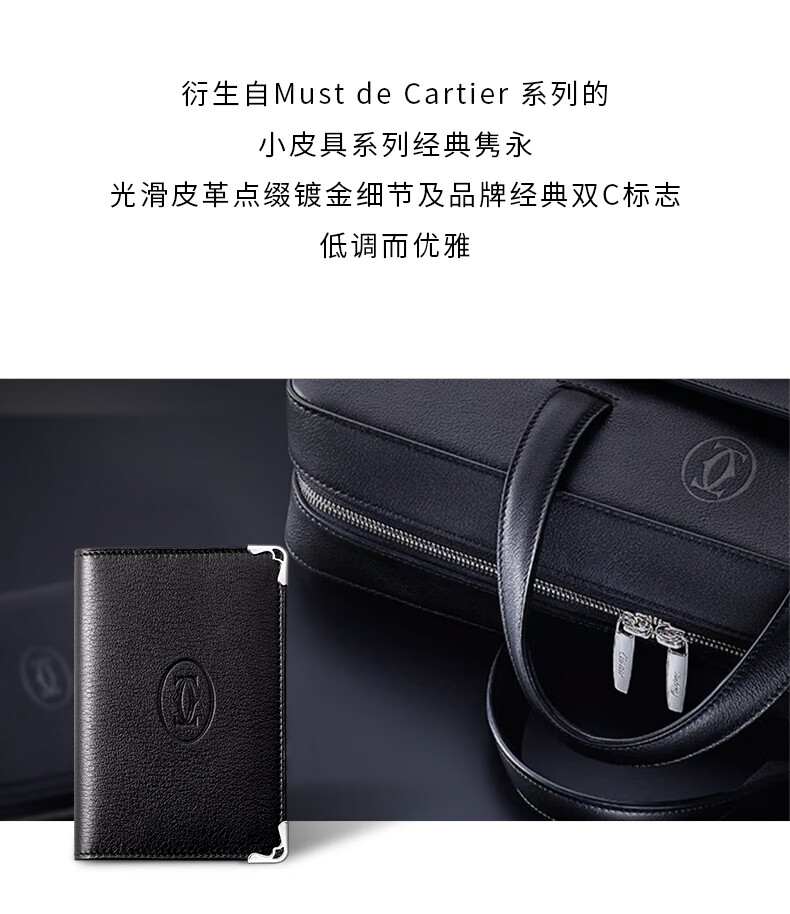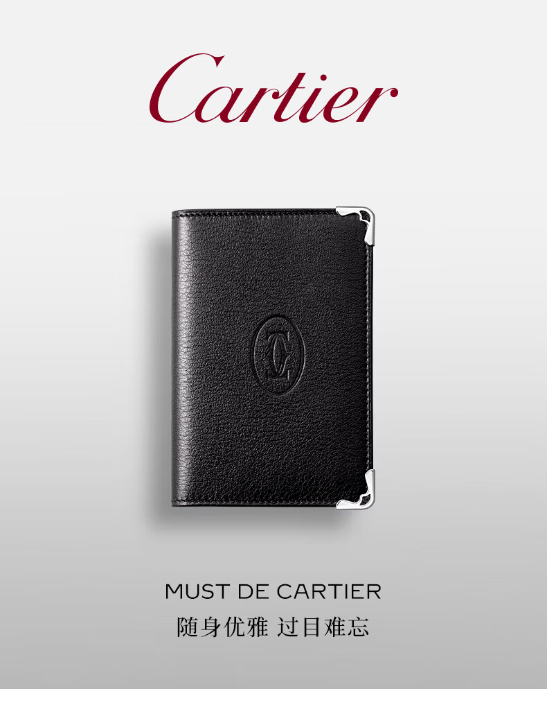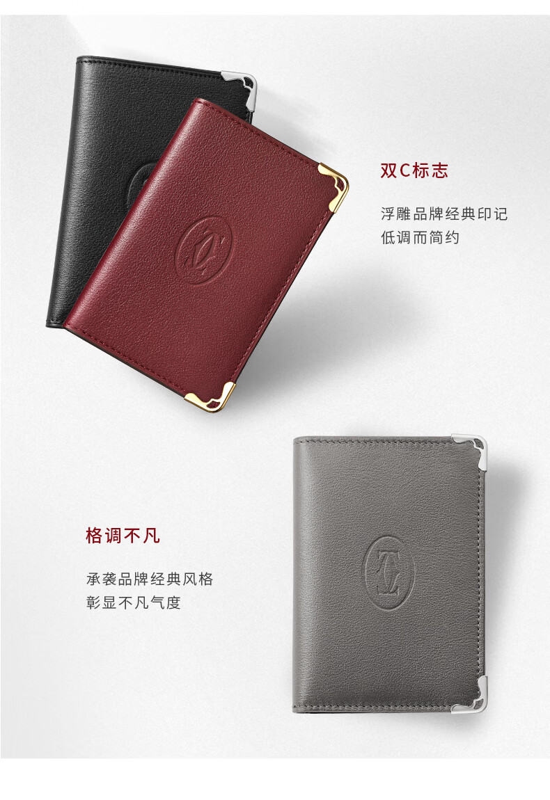 Cartier Must Series Credit Card Business Card Holder Calfskin Double C Logo Card Holder Black, Stainless Steel Decoration