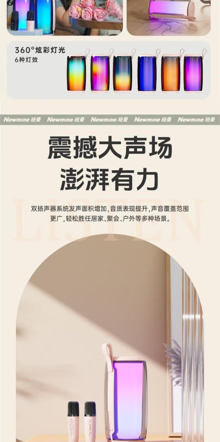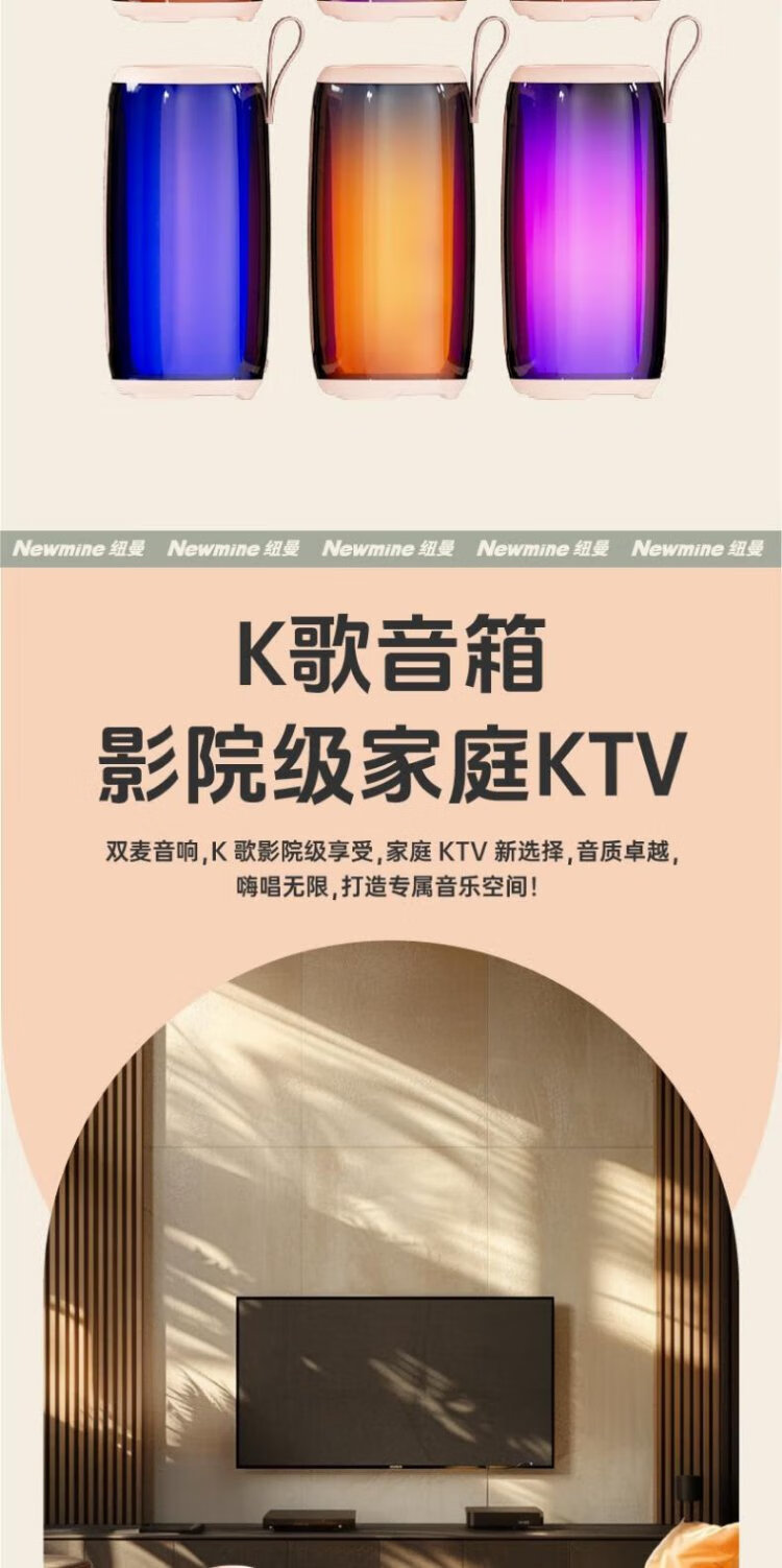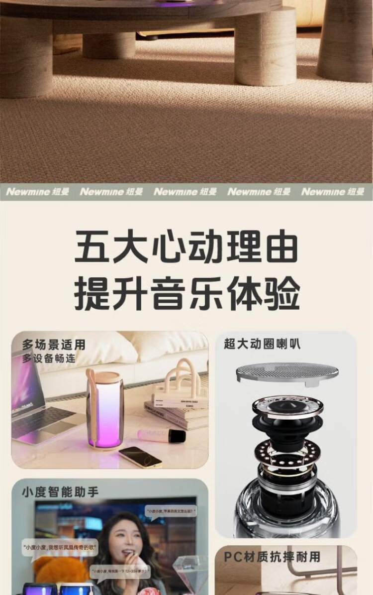 Newmine M18 wireless Bluetooth speaker dual microphone karaoke microphone audio all-in-one home ktv audio set comes with sound card karaoke artifact outdoor mobile phone TV singing karaoke girl fan double wheat Bel Canto smart model + Xiaodu voice assistant