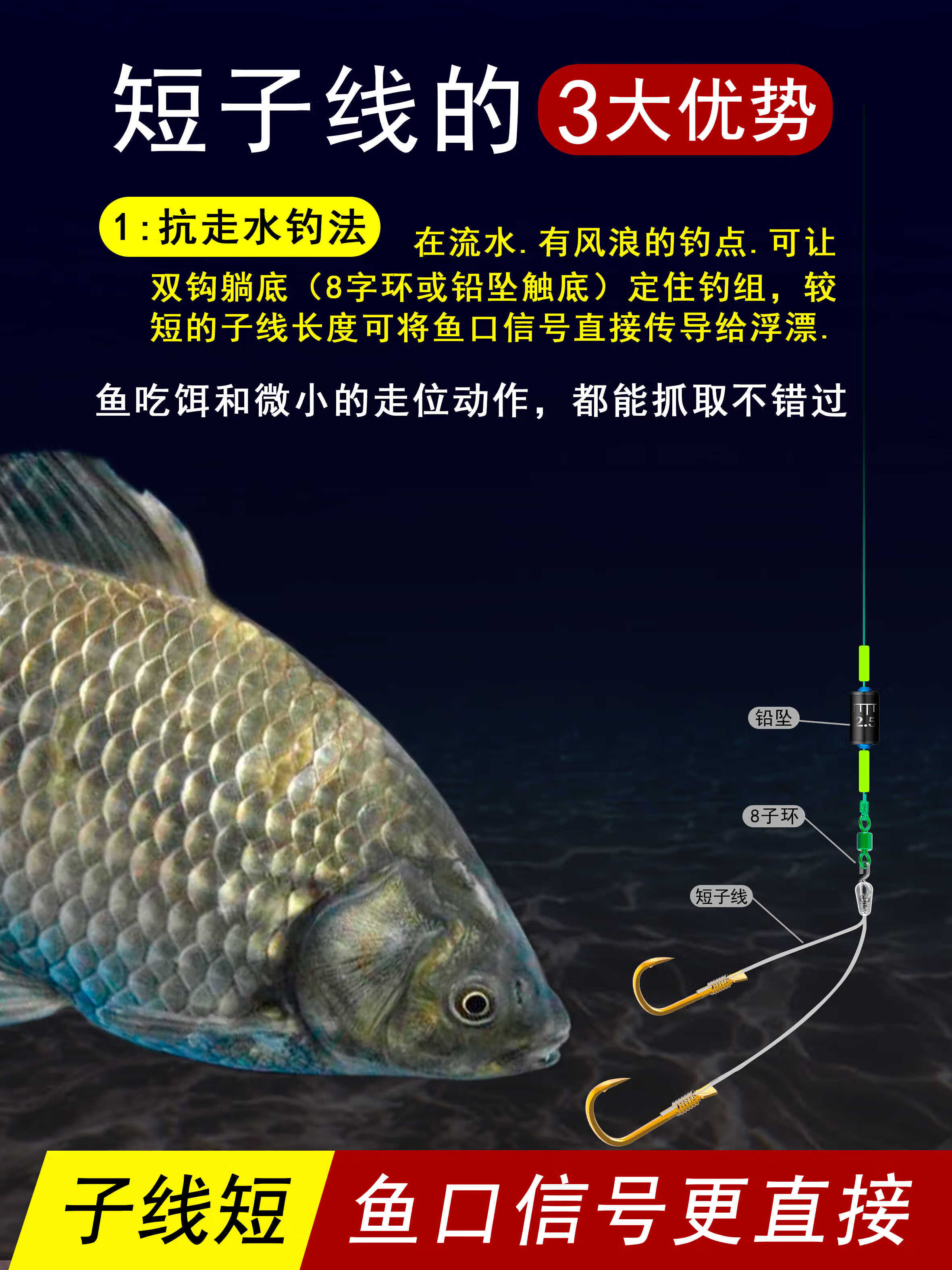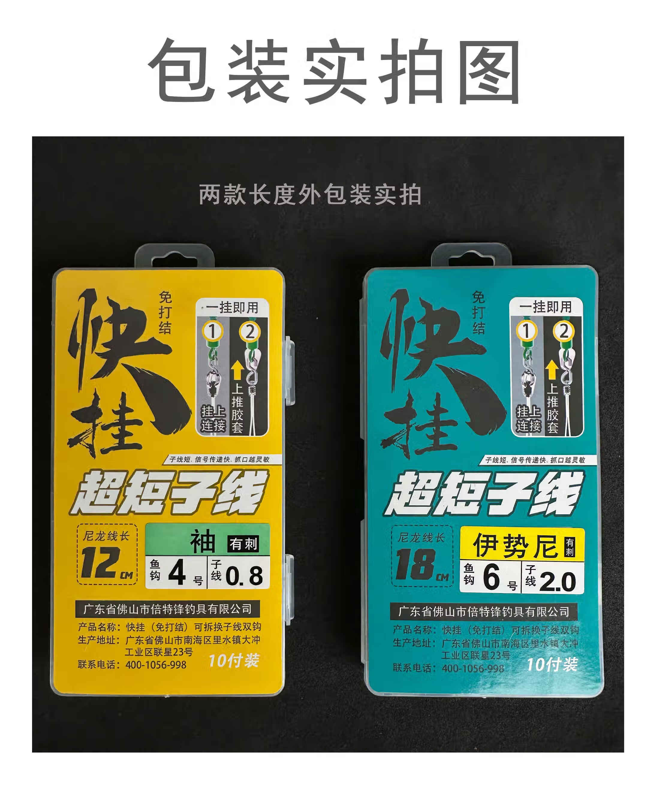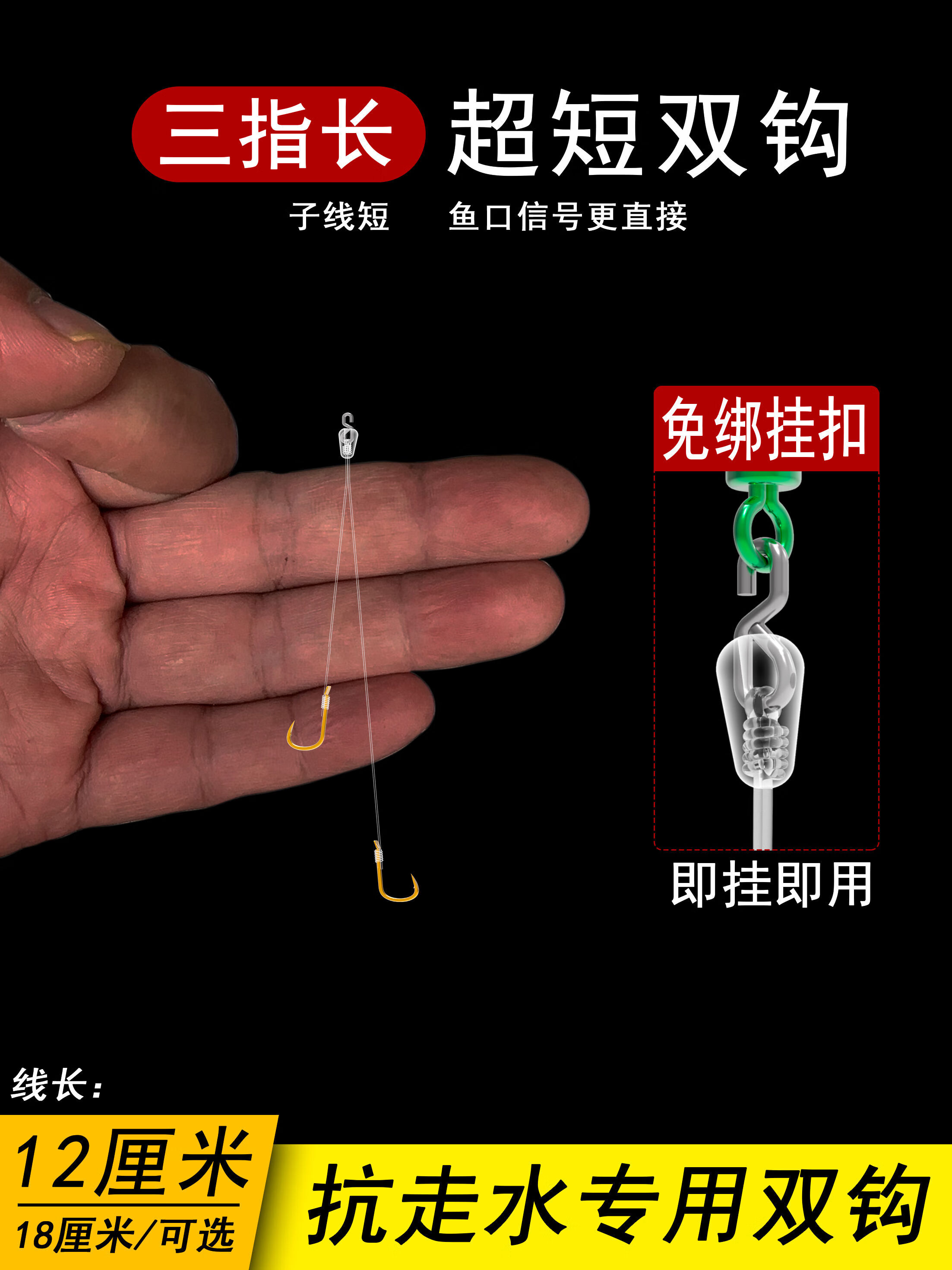 Beitefeng anti-water leakage 12cm short sub-thread hook finished product double hook tied with fishhook gold sleeve Iseni Izu 18cm 12cm gold sleeve with thorns quick-hang sub-thread 10 pairs/box No. 5 hook