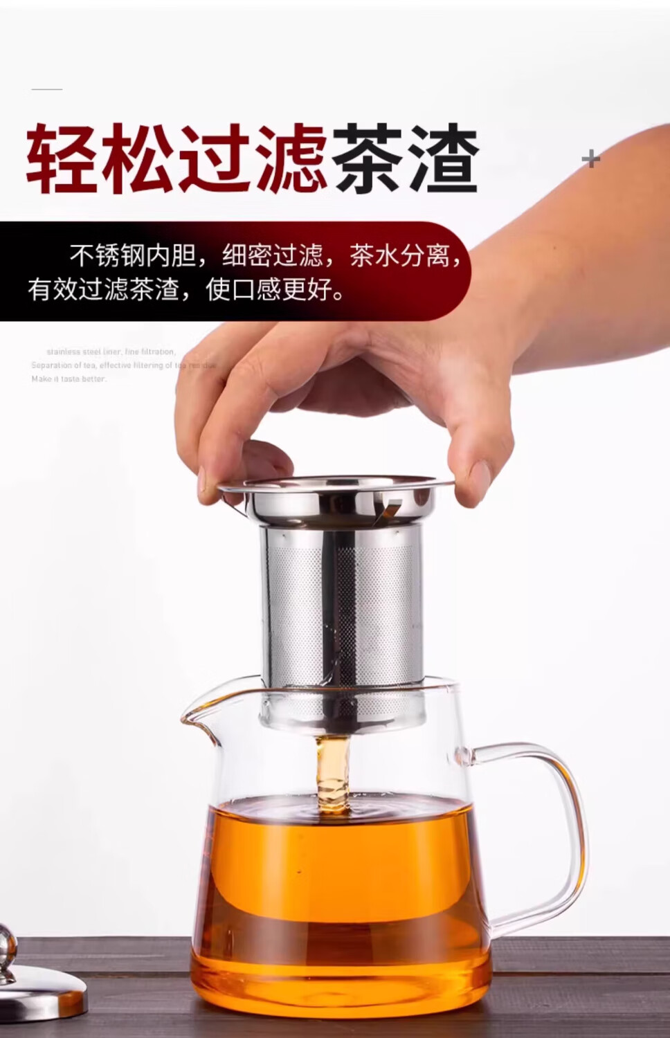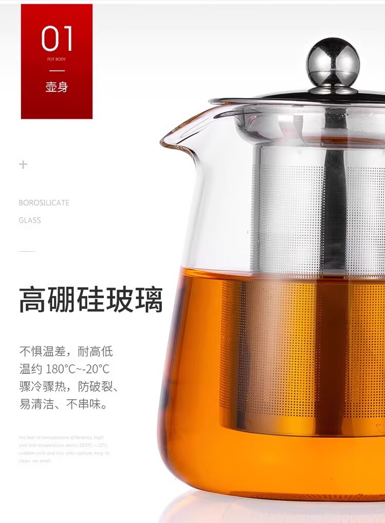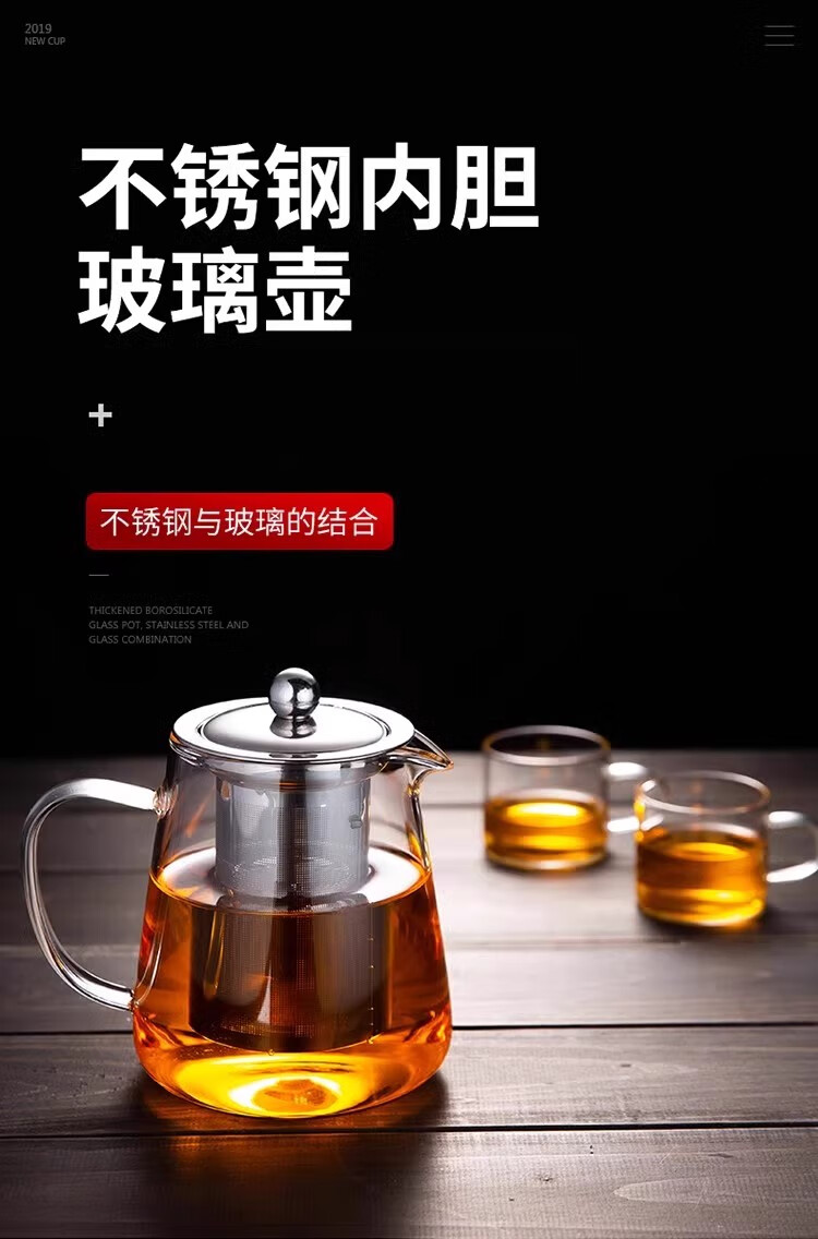 Glass teapot, tea water separation, high temperature resistant thickened tea set, household kettle, single pot teapot, glass straight pot, 450ml 1 piece