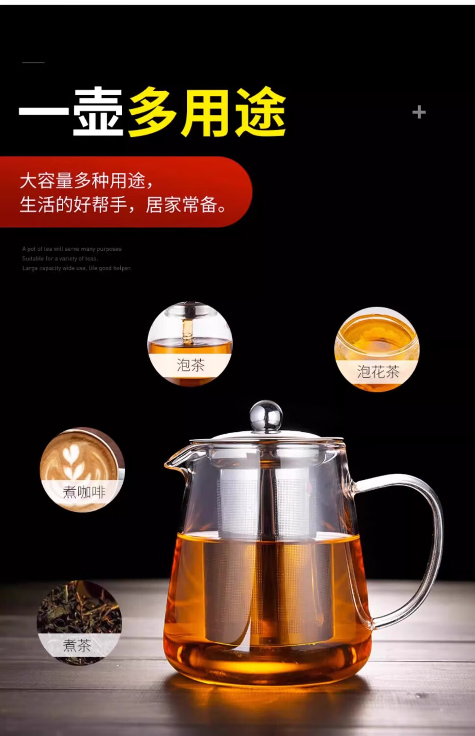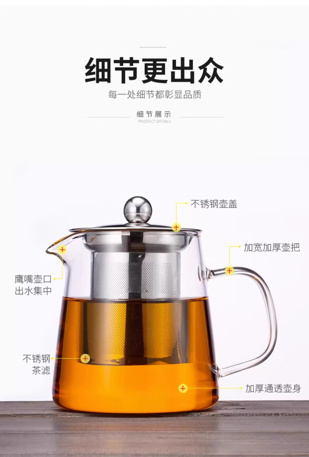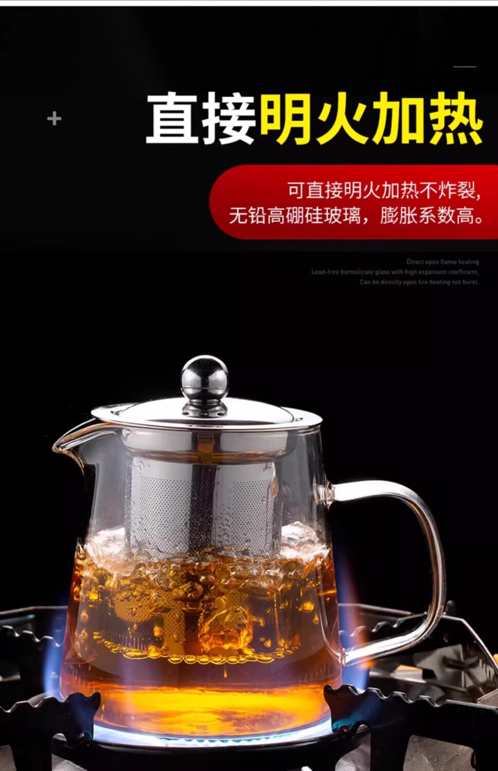 Glass teapot, tea water separation, high temperature resistant thickened tea set, household kettle, single pot teapot, glass straight pot, 450ml 1 piece