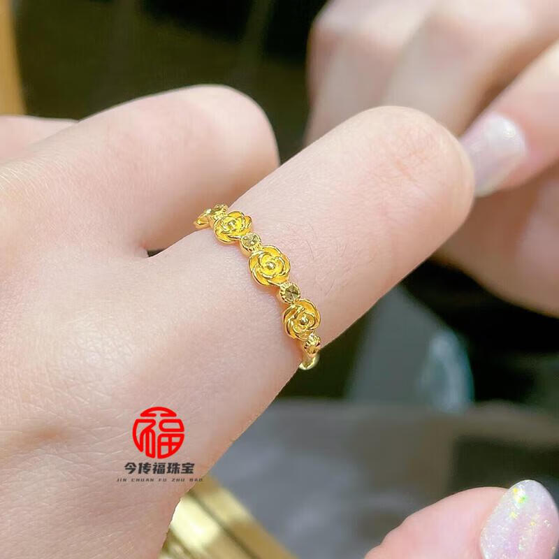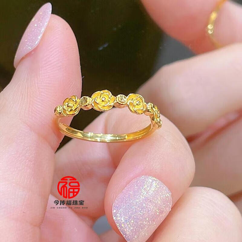 Fat Donglai quality gold-plated silver ring Little Prince Rose Flower Girl New Romantic Retro Style Gold Flower Opening Four Seasons Flower Ring