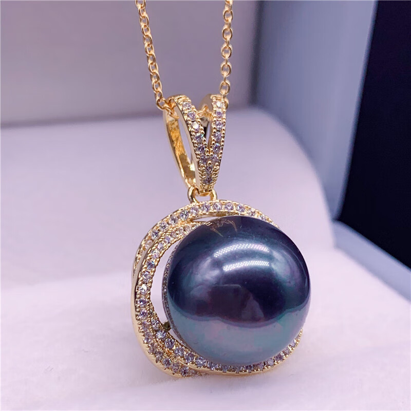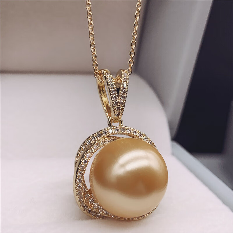 Pearl pendant, South Sea gold beads, natural sea water, 925 silver covered gold necklace, perfect round shape, gold beads and gold slippers, 12-13mm x 45cm