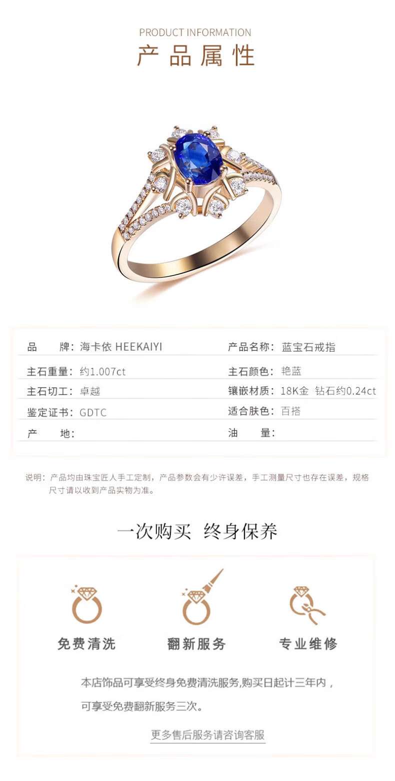HEEKAIYI Ring Women's Sapphire Ring Luxury Jewelry Chinese Valentine's Day Birthday Gift for Wife and Girlfriend Selected Sapphire Ring (1.007ct/Selected Flawless)