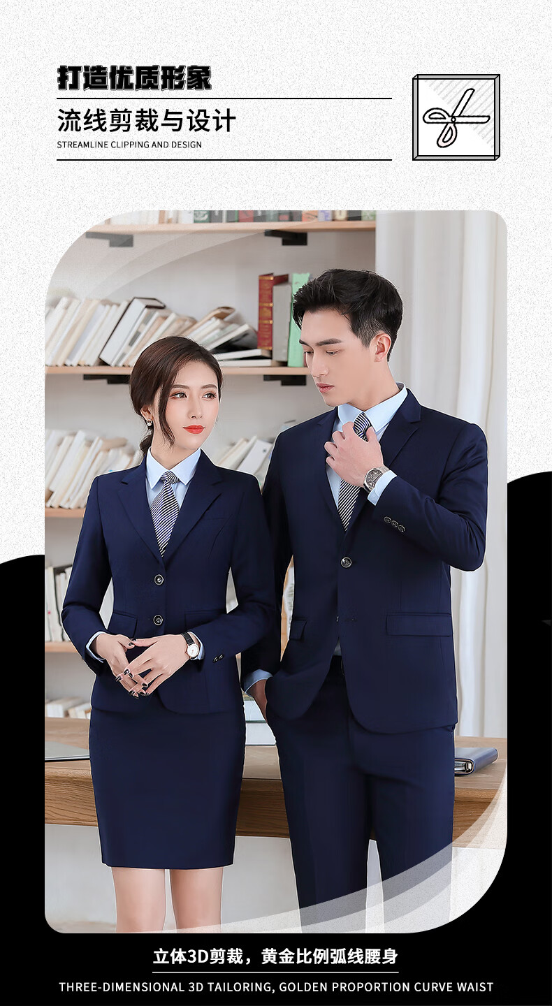 Playboy suit suit for men and women, professional formal wear, real estate 4S store three-piece suit suit sales work clothes, royal blue men's suit S