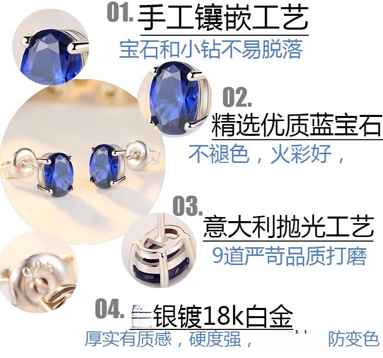 Fat Donglai's same style sapphire earrings for women, Japanese and Korean fashion colored gemstone earrings, tanzanite earrings accessories