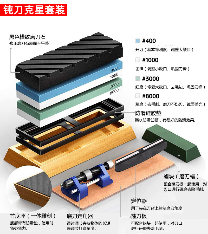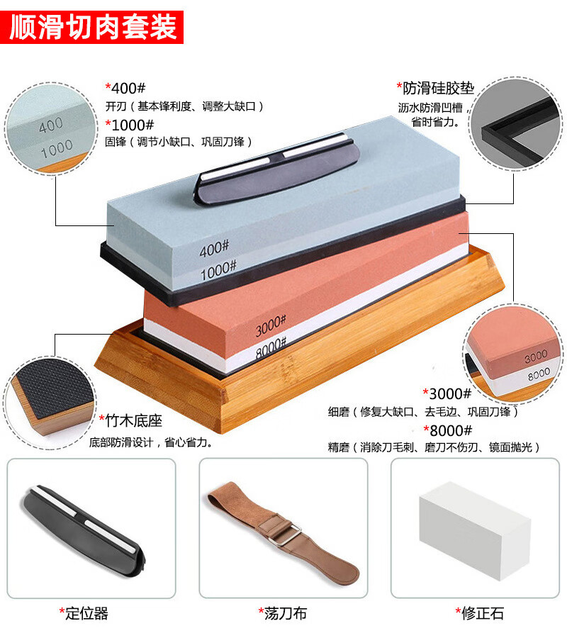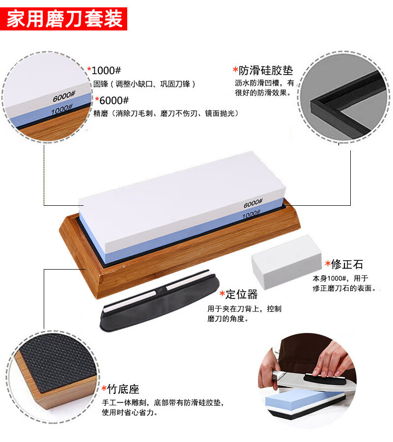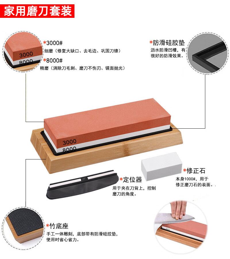 Double-sided whetstone for household kitchen knives, kitchen chef's special whetstone sharpener tool, grinding stone, thick and fine oilstone, 5000/10000 mesh + silicone pad