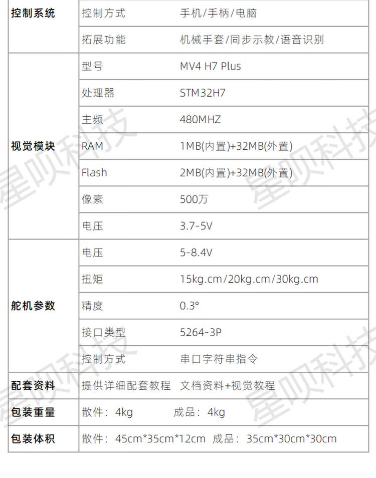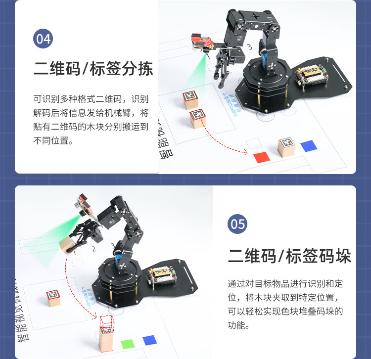 Xingjiashe open source AI visual recognition robot arm MV4 H7 six-axis freedom robot arm stm32 programmable diy smart vision kit parts + portable aluminum box