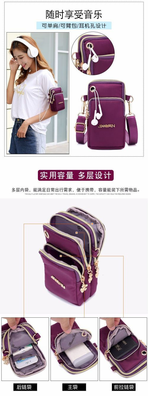 Buchaomiao New Large Screen Mobile Phone Bag Women's Bag Coin Purse Small Backpack Waterproof Nylon Cloth Bag Arm Bag Wrist Bag One Shoulder Crossbody Dark Blue