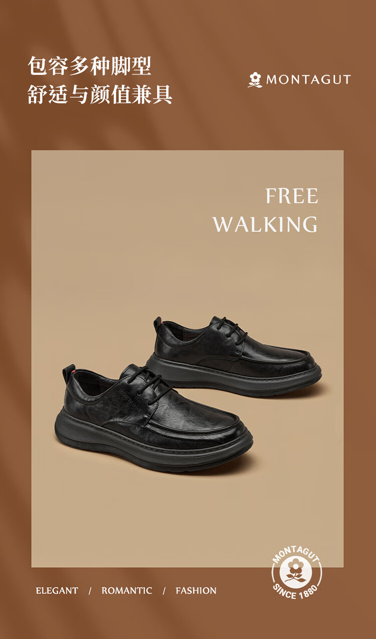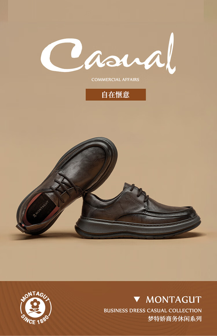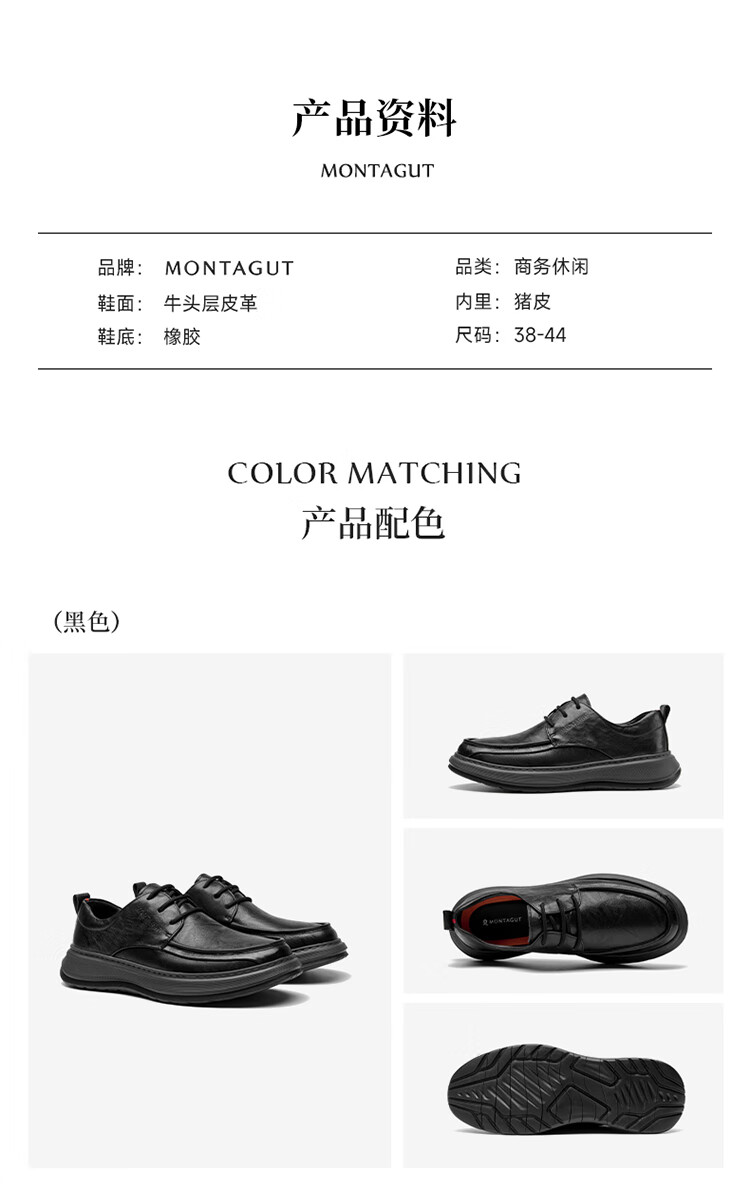 MONTAGUT genuine leather shoes for men in autumn and winter high-end business casual shoes soft sole first layer cowhide men's shoes large leather shoes for men black (first layer cowhide) 40 standard leather shoe size