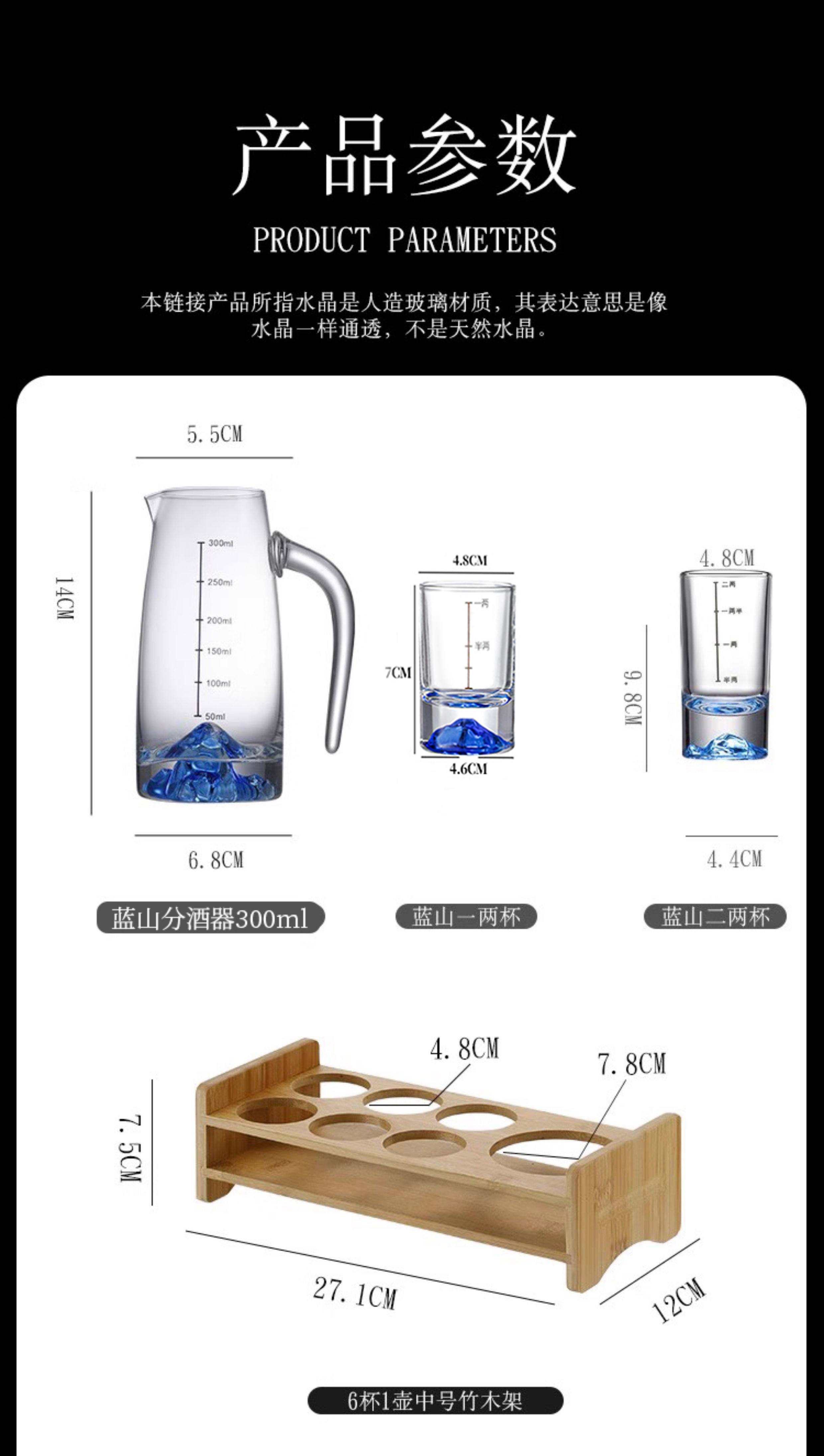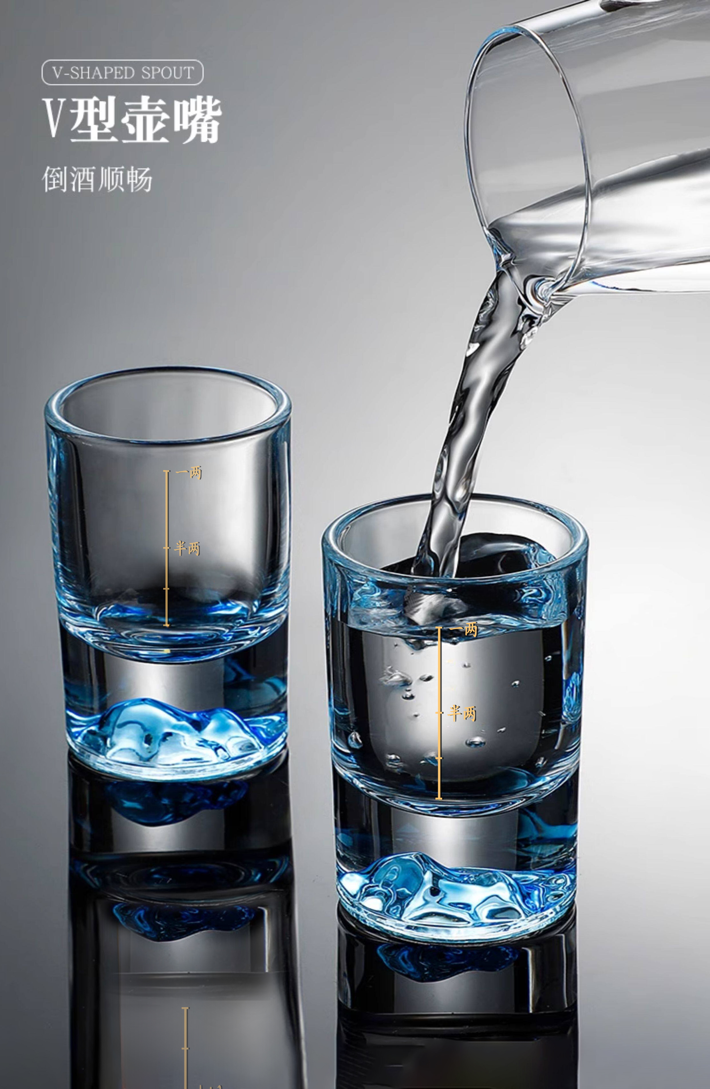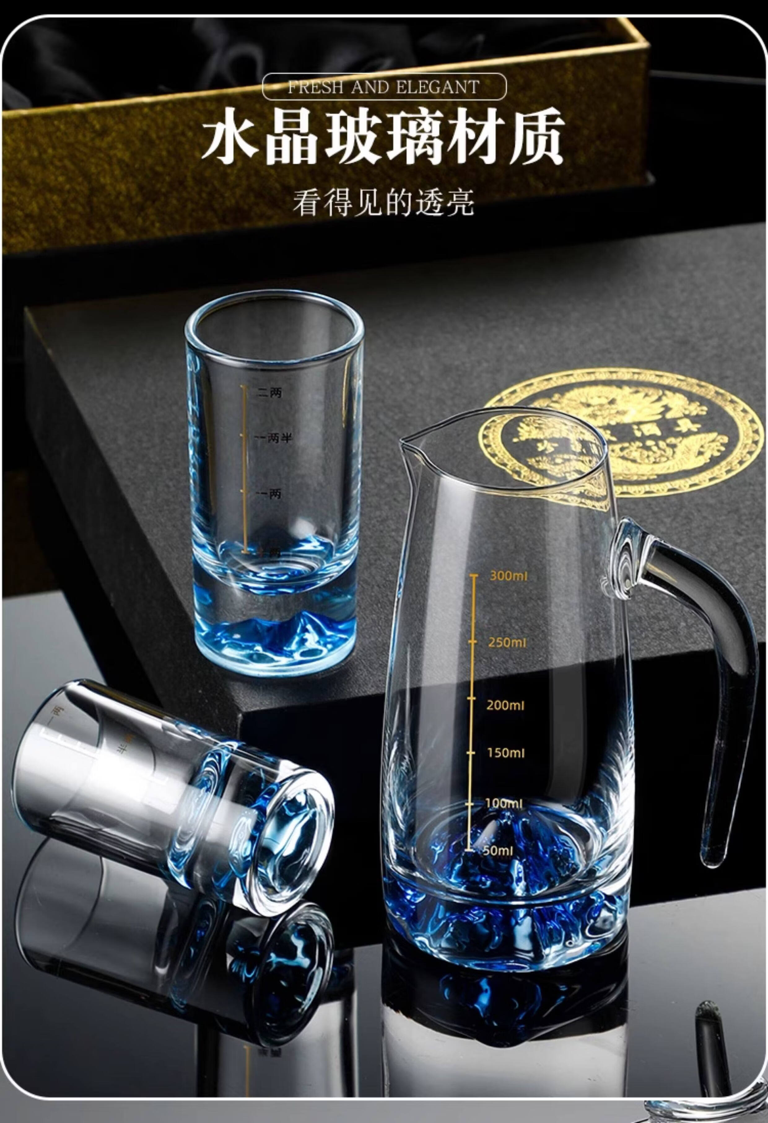 Luxury Flowers 2 Liang Blue Mountain White Wine Glass Home Set Creative Iceberg Crystal Glass Wine Divider Scale Light Luxury High-end Wine Set Blue Mountain 2 Liang White Wine Glass 2 PCs