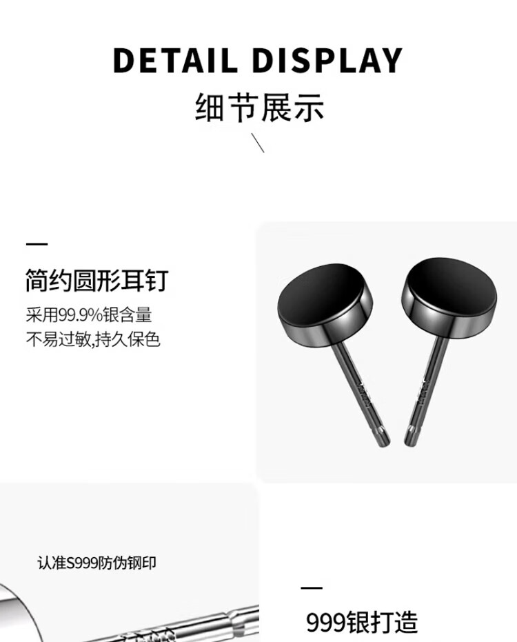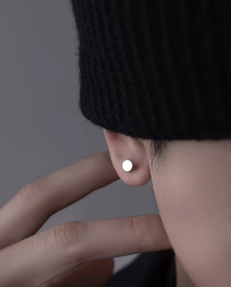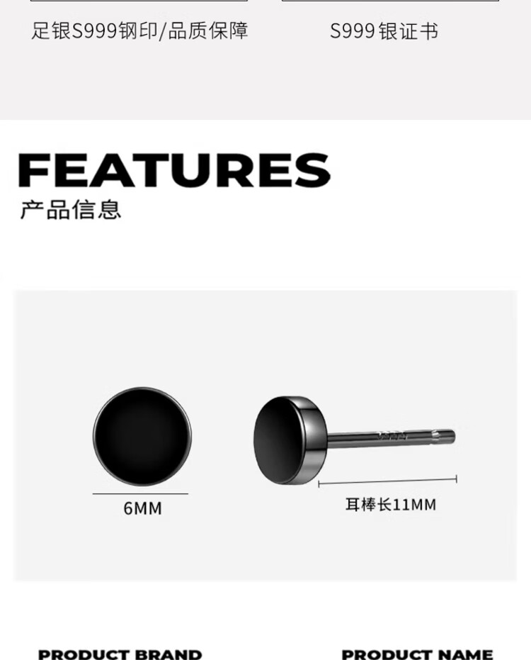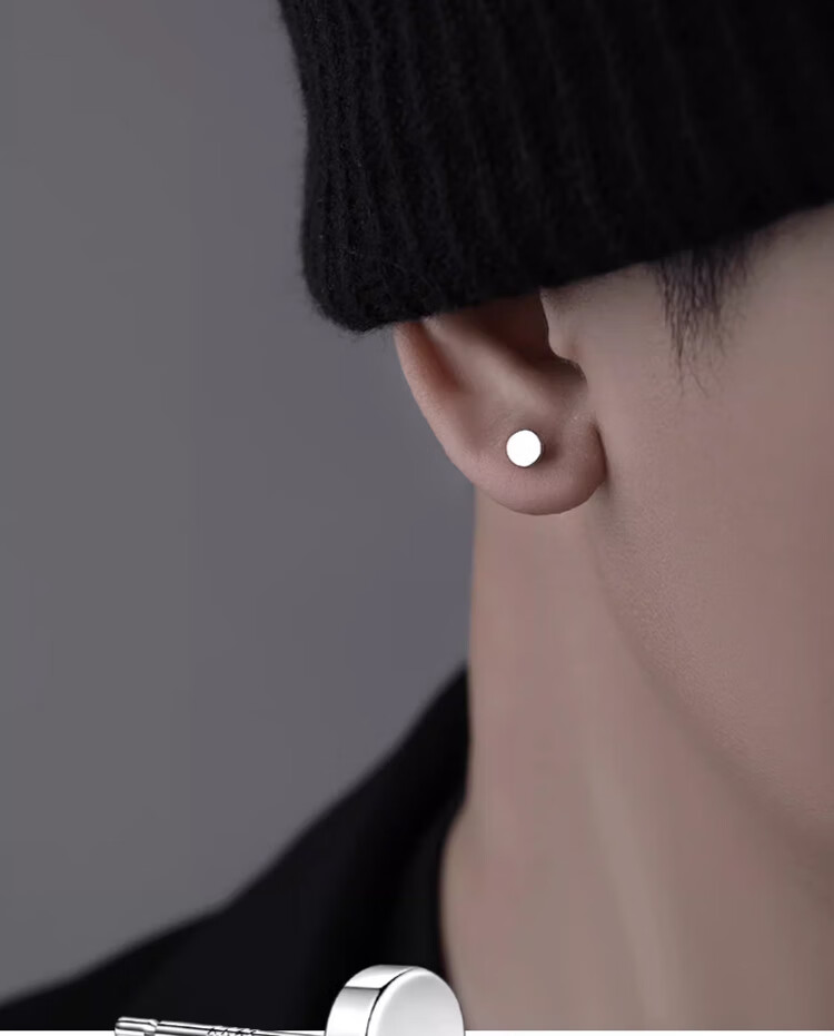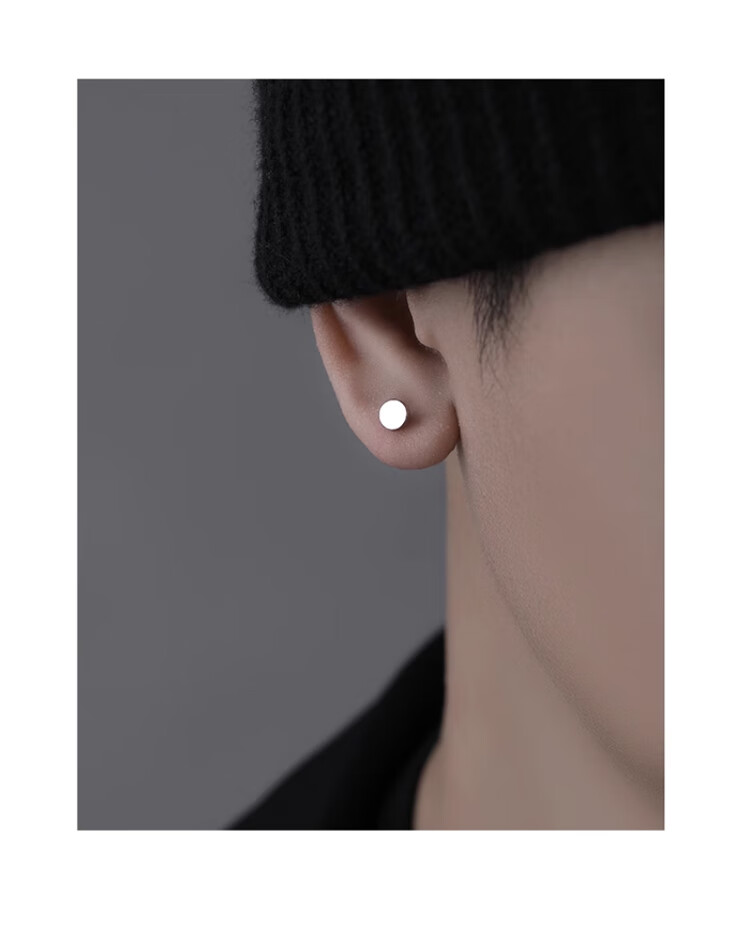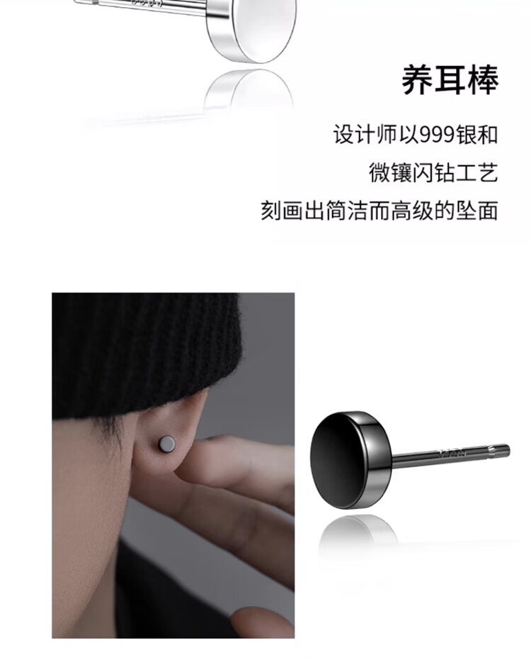 Mansheng Pure 999 Pure Silver Ear Hole Earrings Men's Trendy Personalized Ear Bone Nails 2026 New Single Earrings Men's Earrings One Black Earrings Whole Body 999 Pure Silver