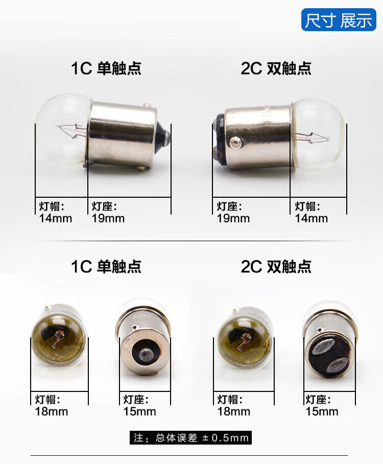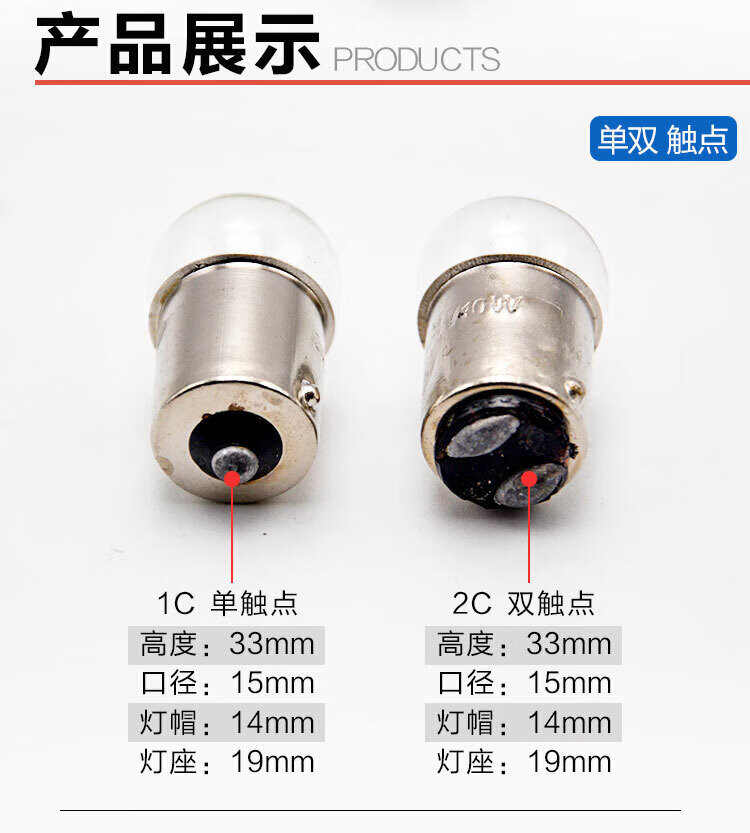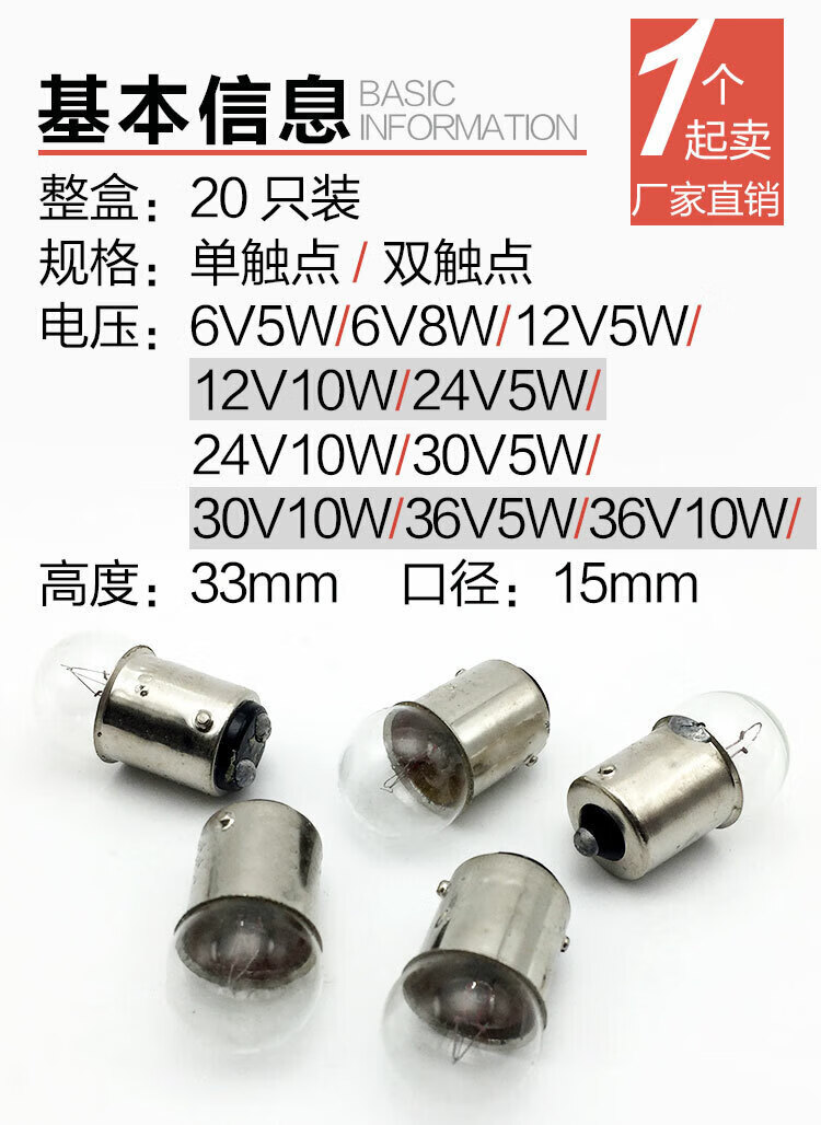B15 round head alarm indicator bulb small lamp bead bayonet single and double contacts 6V12V36V24V30V36V5W10W single point 6V double point 12V10W ordinary other warm yellow