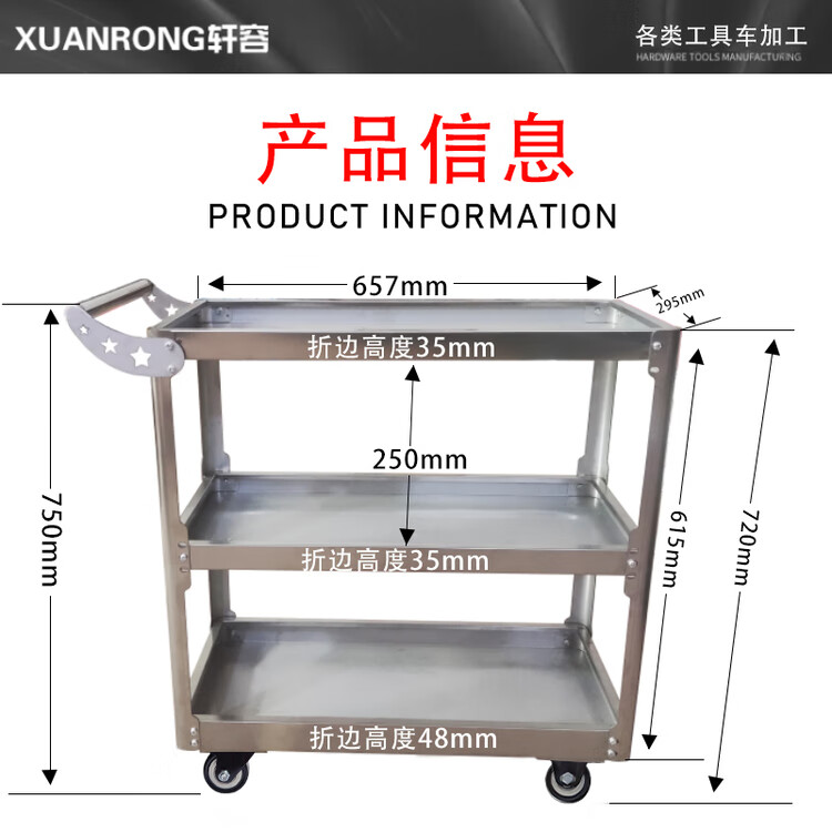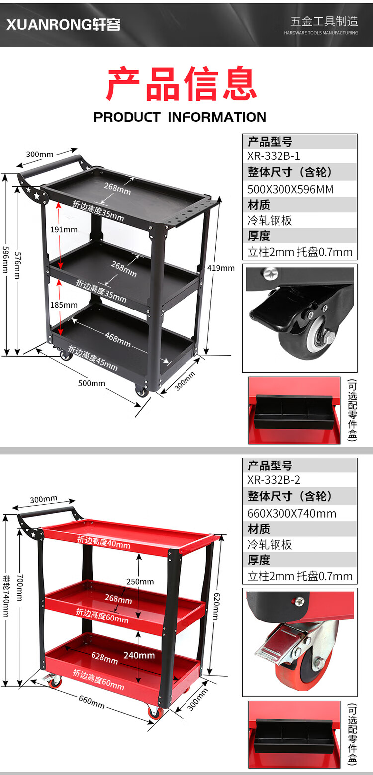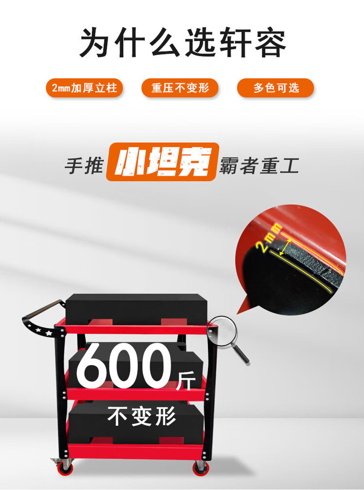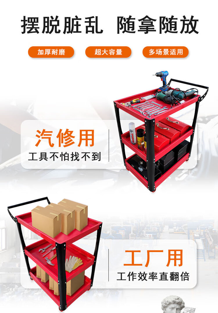 Aoyu heavy tool cart thickened trolley factory auto repair parts storage cart mobile storage rack storage cart workbench 2mm column + 0.9 pallet red four layers + big zero