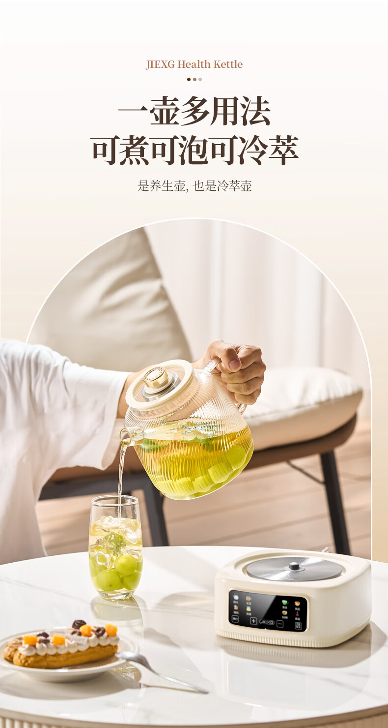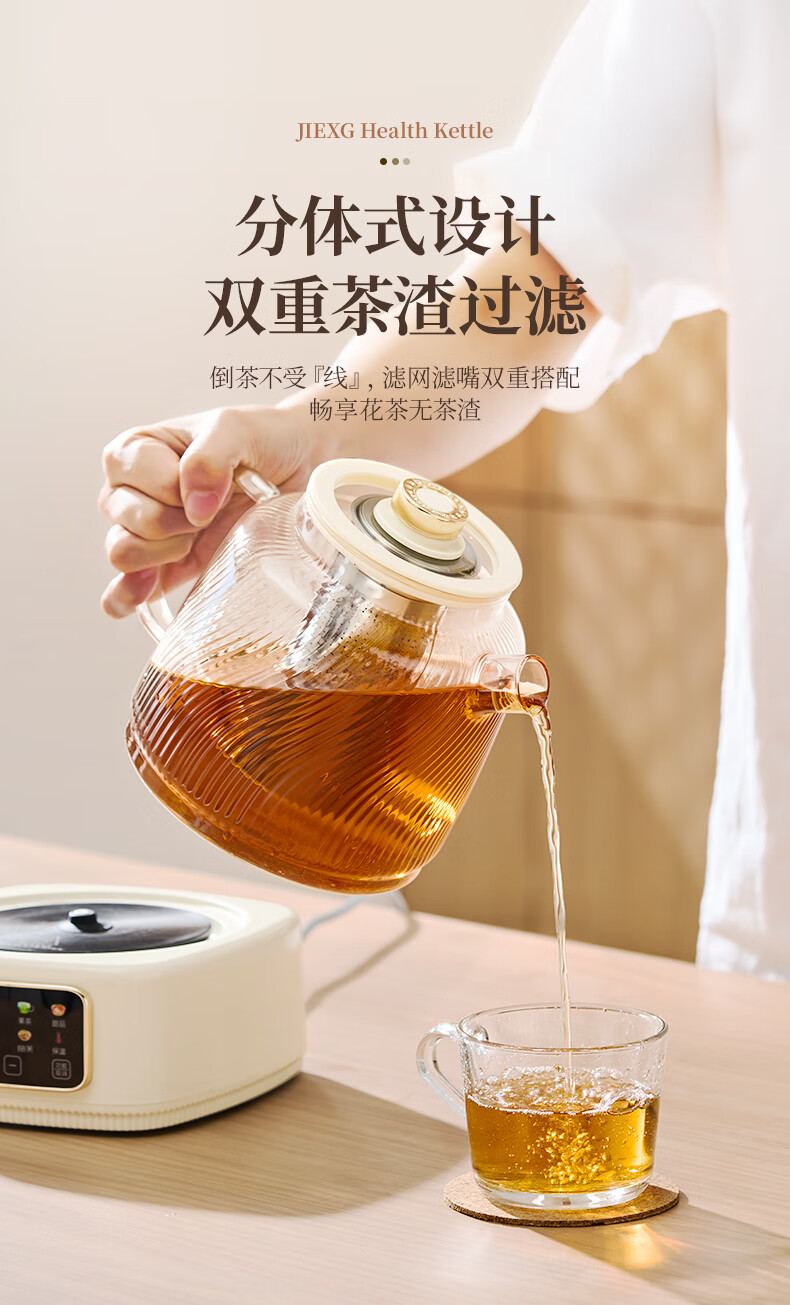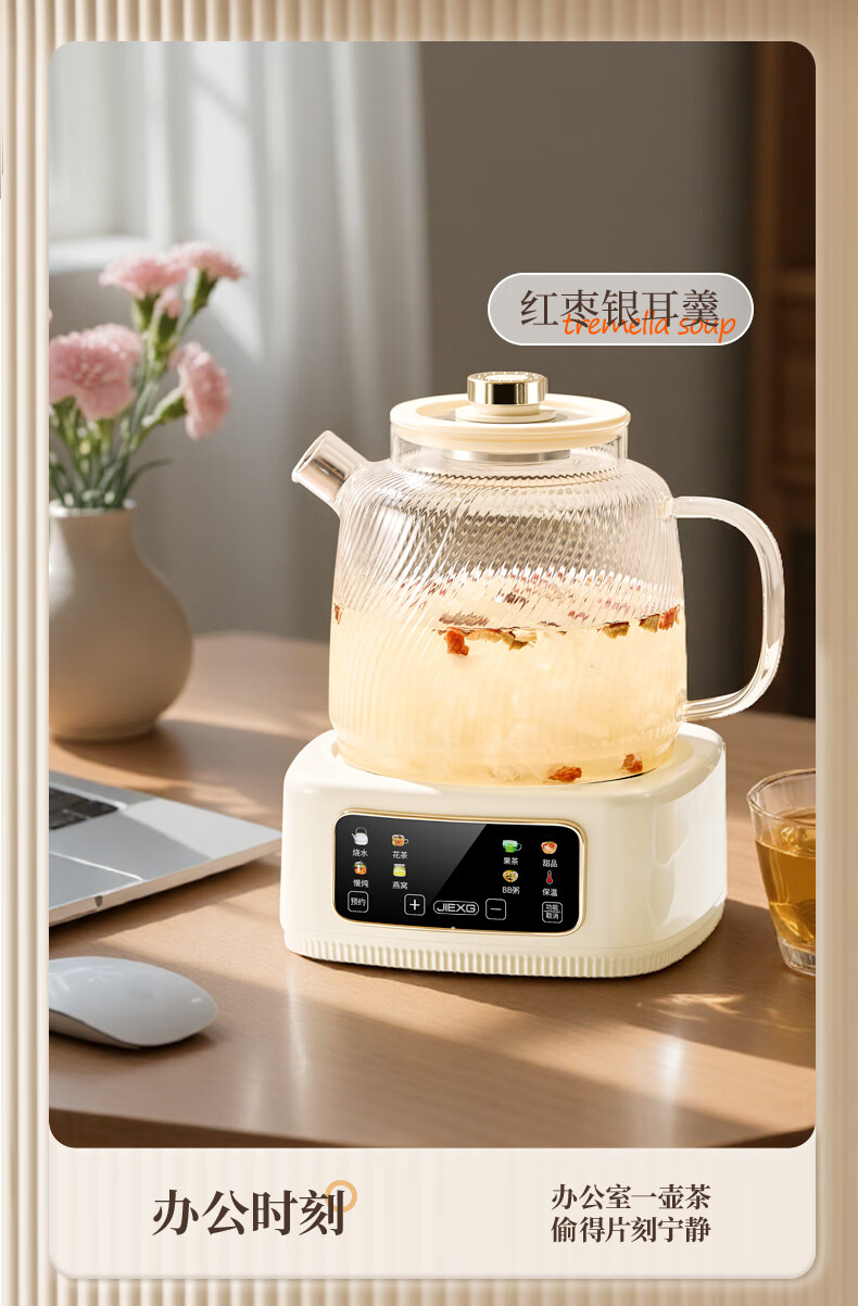 JIEXG German health pot, teapot, teapot, office all-glass scented tea, multifunctional health pot, kettle, electric kettle, stew pot, integrated mini smart insulation 2L smart model with 304 tea filter