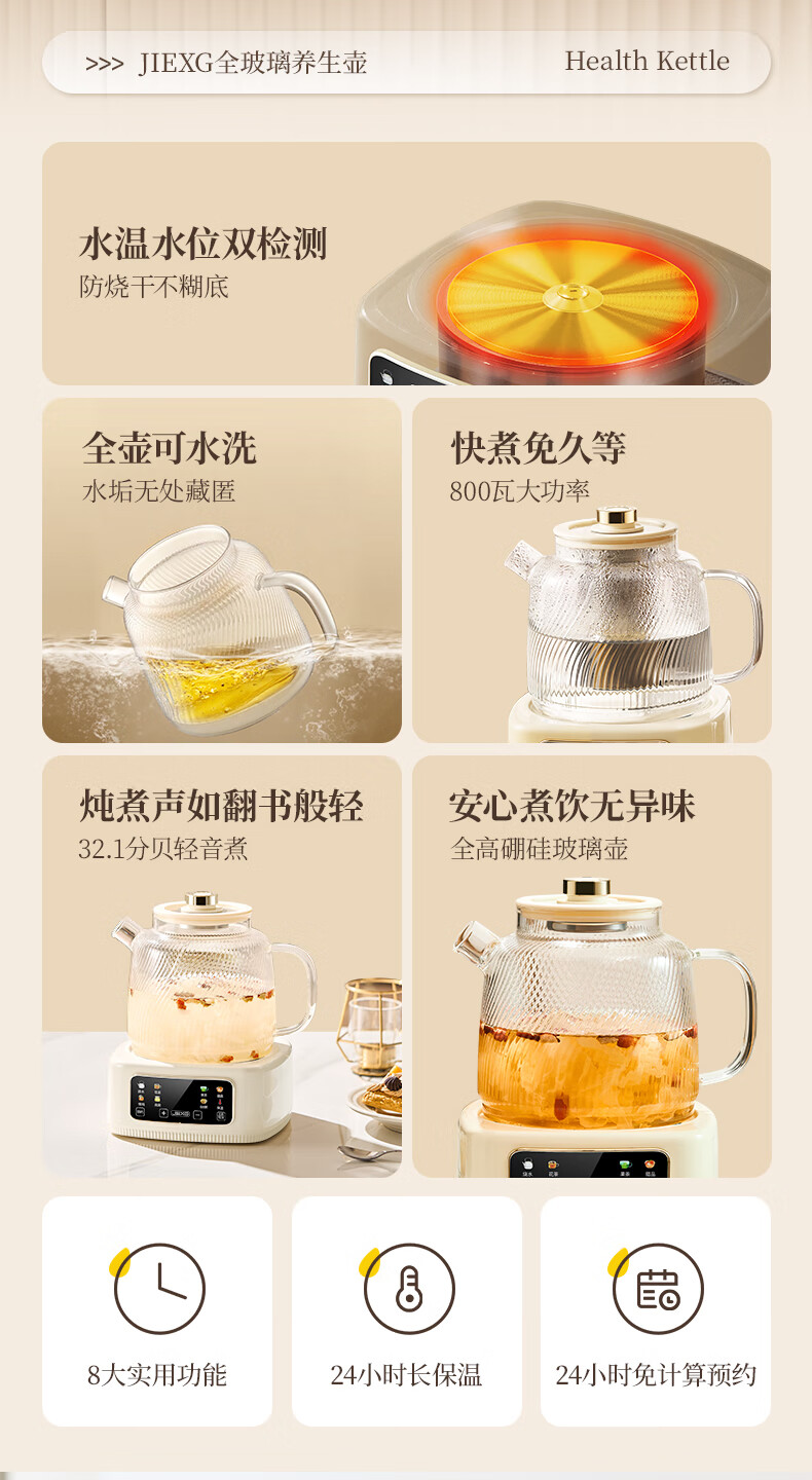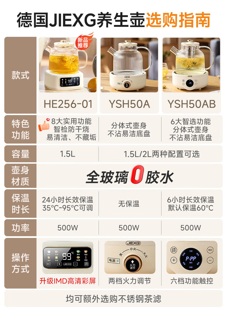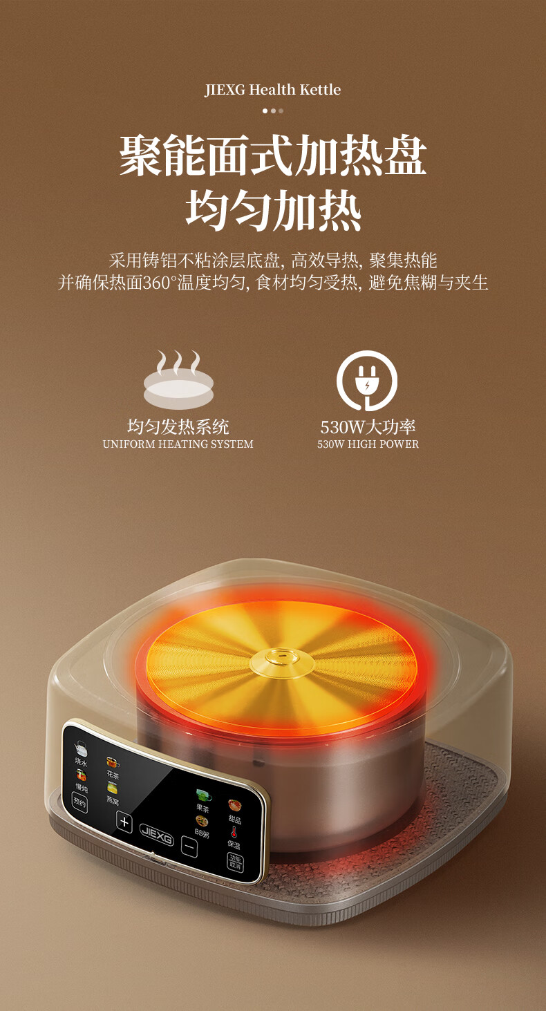 JIEXG German health pot, teapot, teapot, office all-glass scented tea, multifunctional health pot, kettle, electric kettle, stew pot, integrated mini smart insulation 2L smart model with 304 tea filter