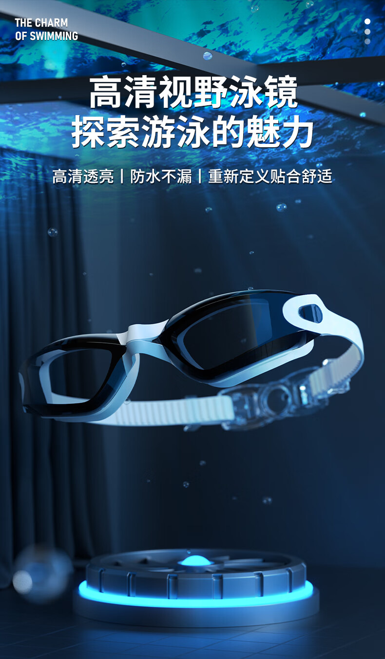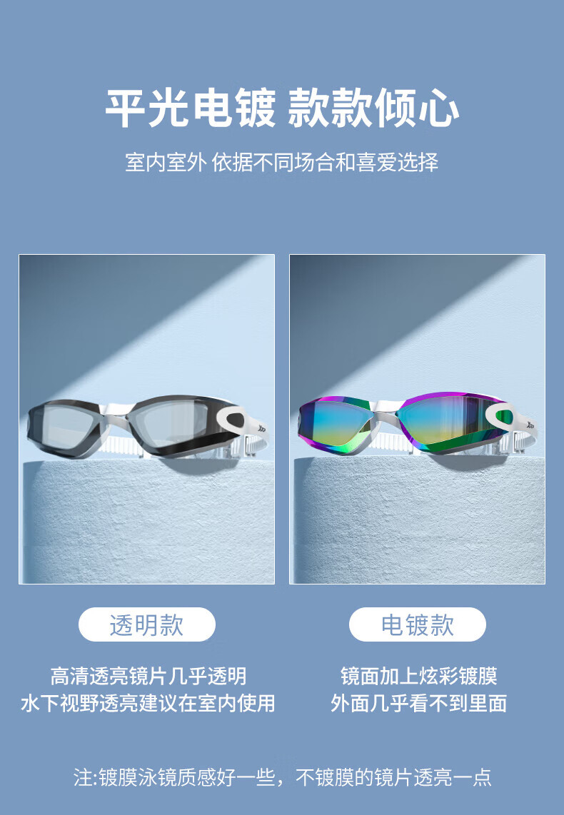 XTEP (XTEP) XTEP swimming goggles waterproof and anti-fog high-definition swimming goggles for men and women professional diving swimming goggles swimming cap set swimming equipment polar night black flat light