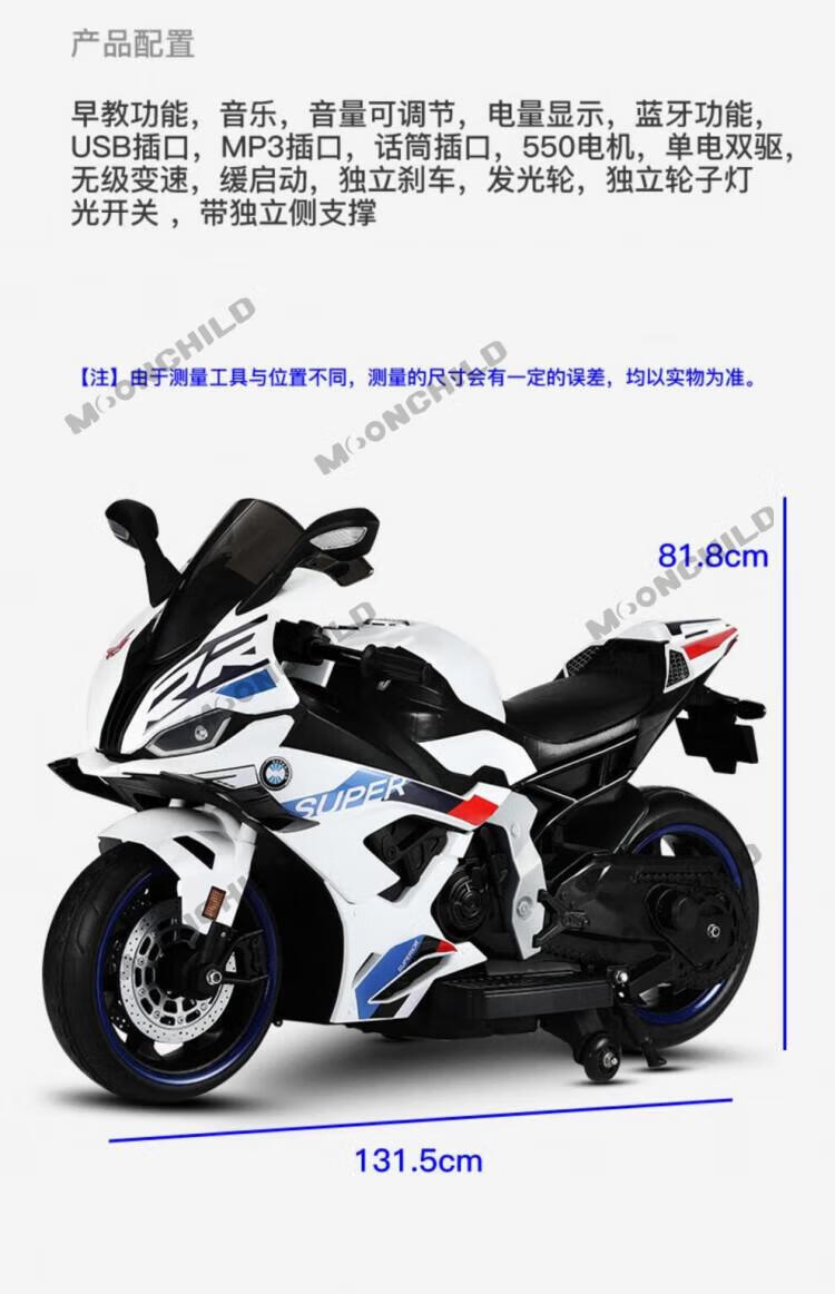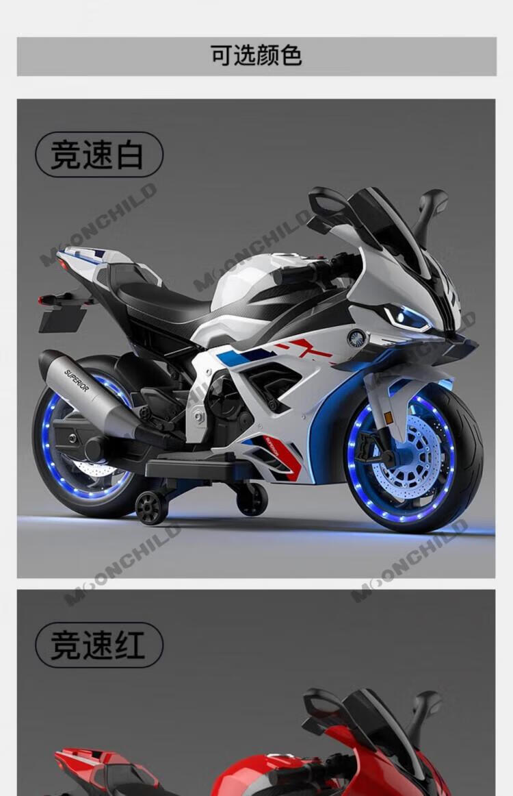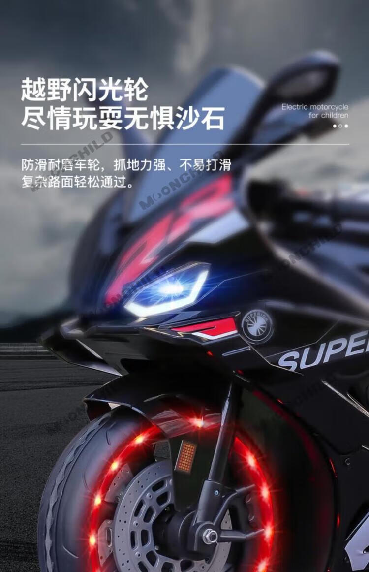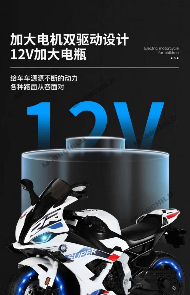 MOONCHILD high-end children's toy electric motorcycle, men's and women's toy battery car, can be used as a Christmas gift for children, red, high-end 12V12 Chaowei battery, soft seat EVA