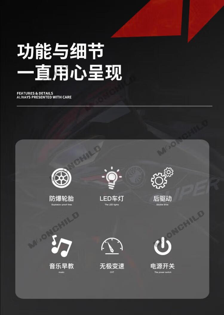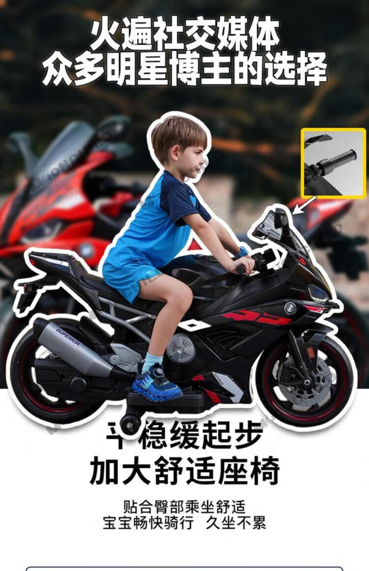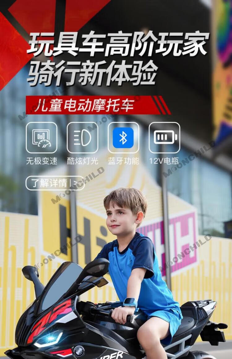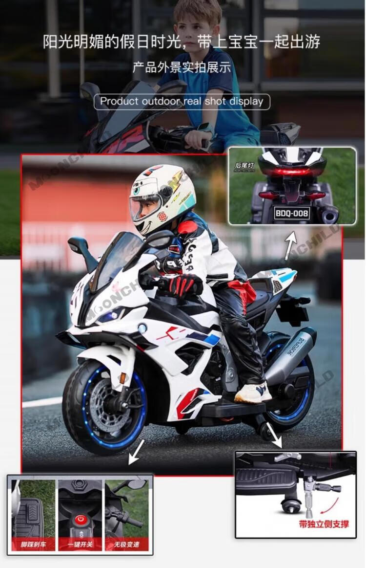 MOONCHILD high-end children's toy electric motorcycle, men's and women's toy battery car, can be used as a Christmas gift for children, red, high-end 12V12 Chaowei battery, soft seat EVA