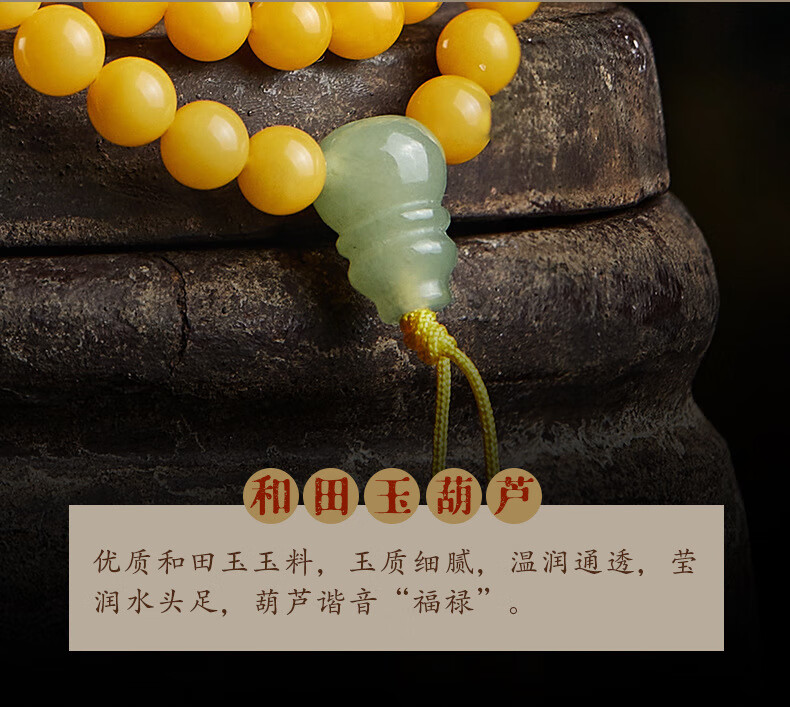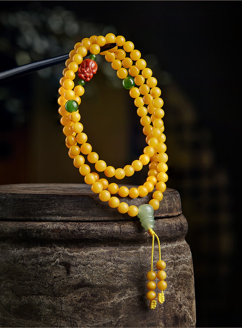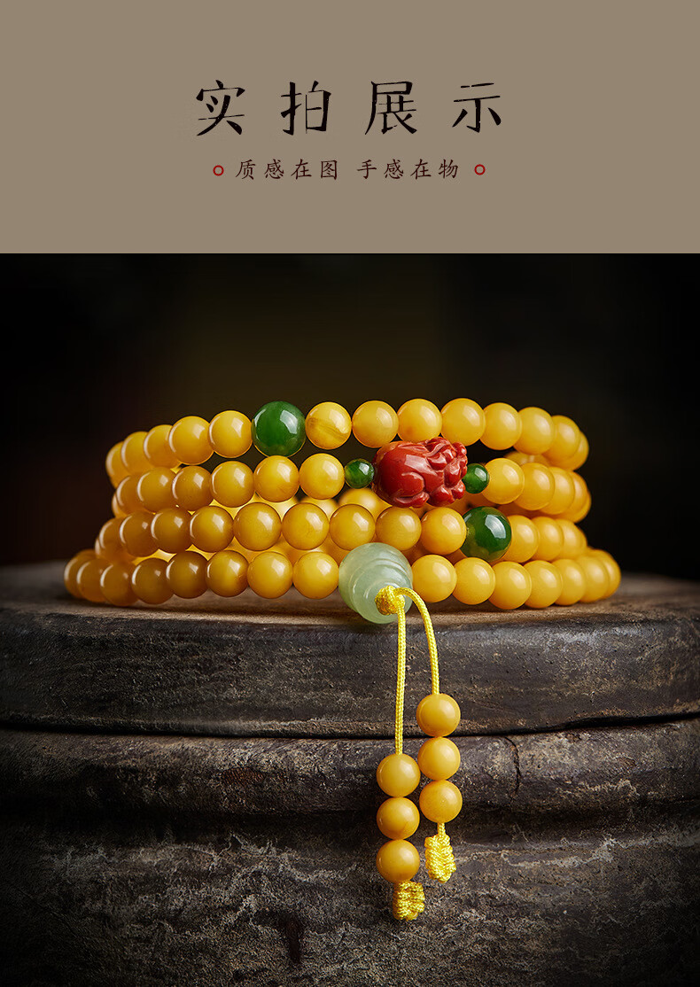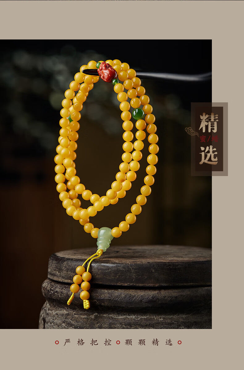 Layun Feiyin beeswax bracelet 108 pieces for men and women authentic chicken oil yellow original stone amber multi-circle bracelet Buddha beads hand-held rosary bracelet 7mm 108 pieces chicken oil yellow