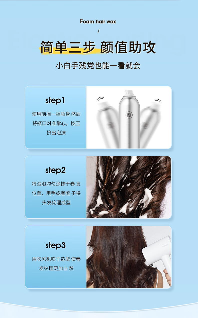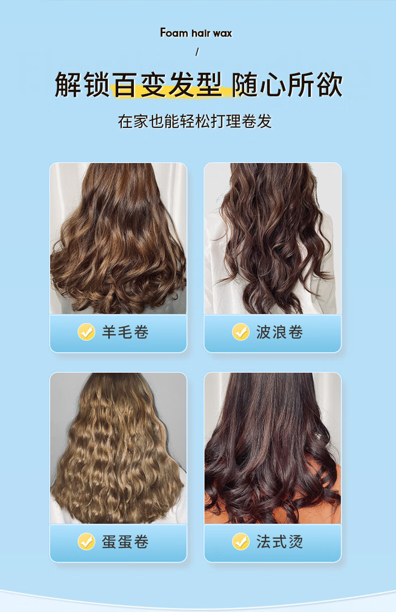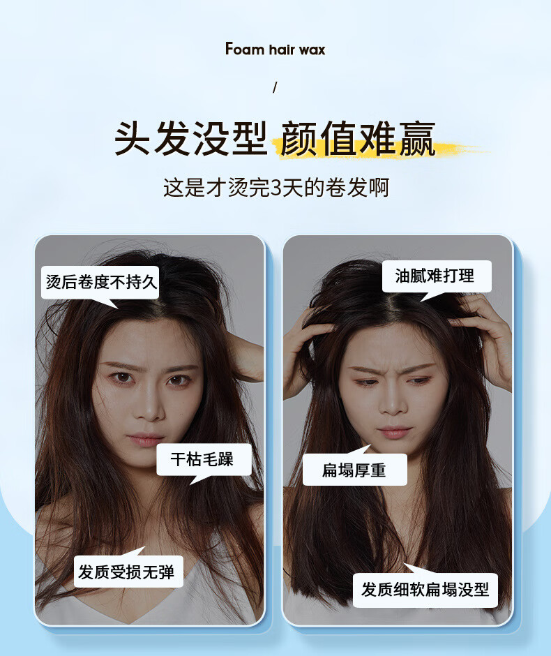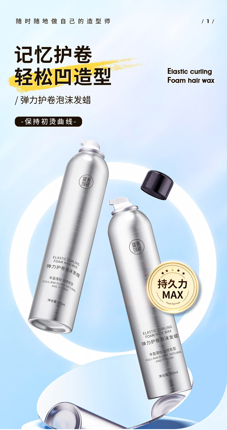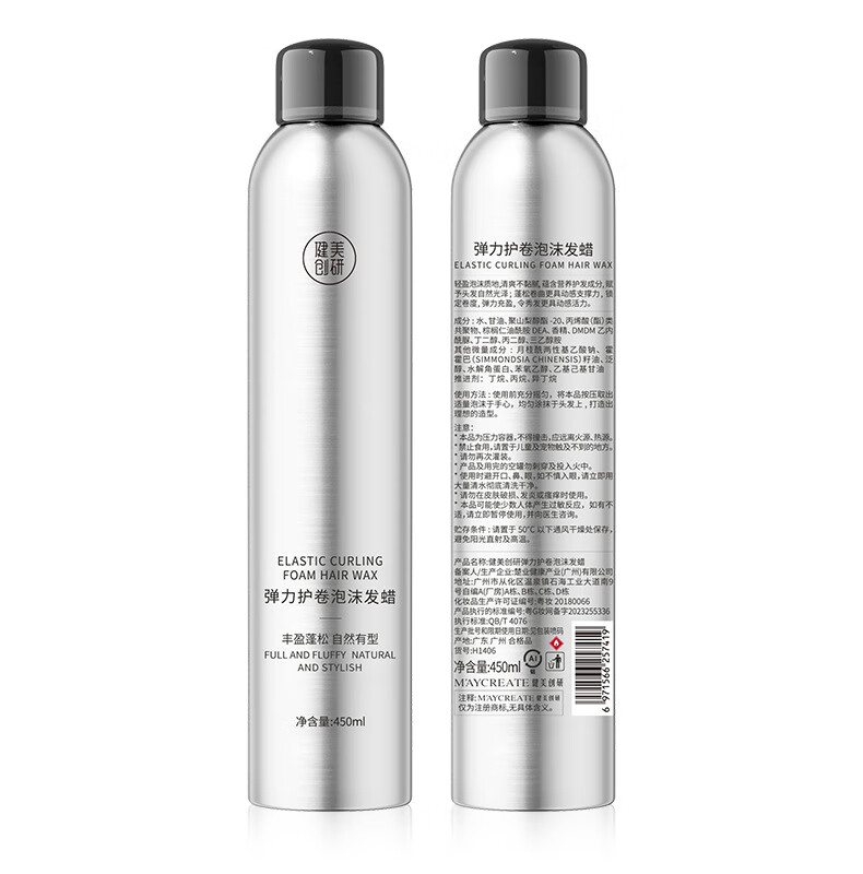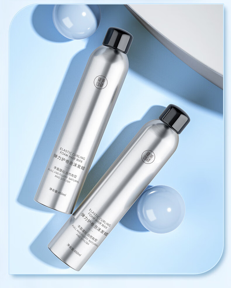 MAYCREATE Hair Wax, Moisturizing and Fluffy Curls, French Perm Mousse, Bubble Elastin, Hairspray Styling, Unisex, Single Bottle, Small Silver Bottle Foam Hair Wax 450ml