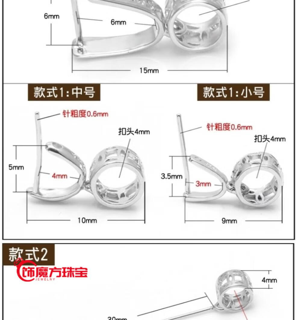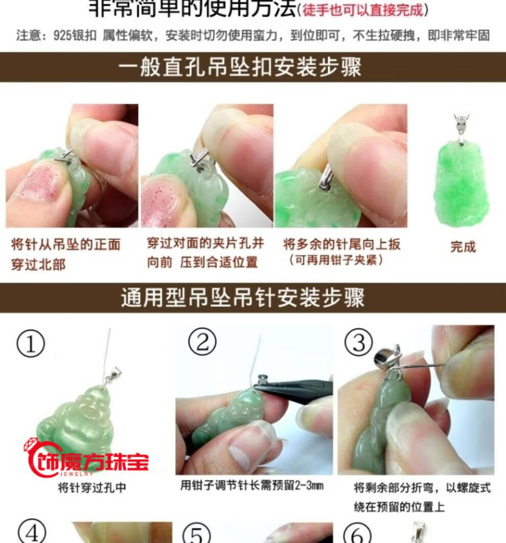 Fat Donglai's same style universal buckle head 18k gold necklace pendant buckle joint jade pendant special jade pendant buckle clip style 1/small size/white gold)