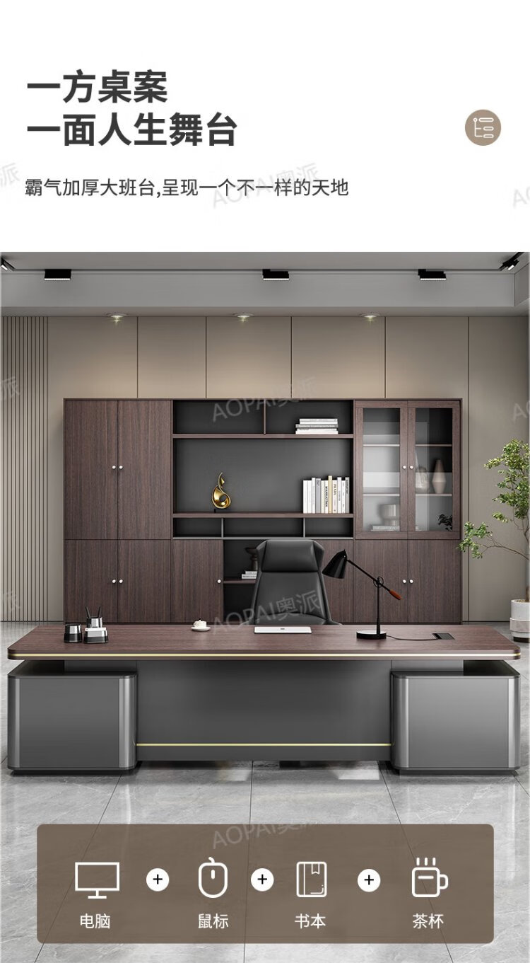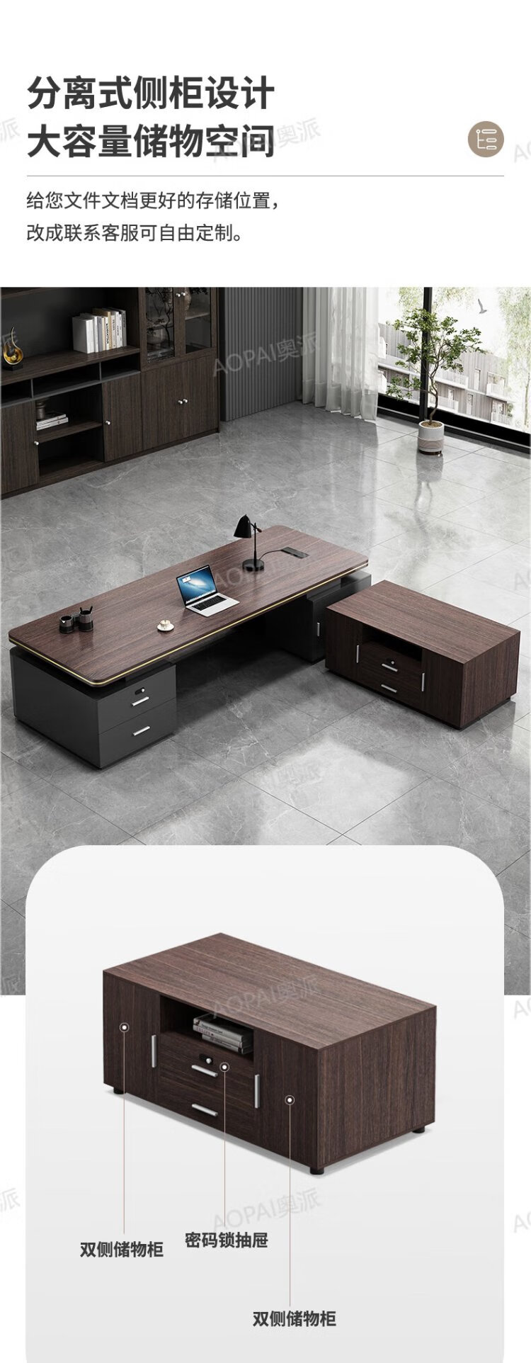 Opaika office desk boss desk simple modern double cabinet mobile cabinet office manager president desk and chair combination desk 1.8*0.8 meter boss desk (installation included)