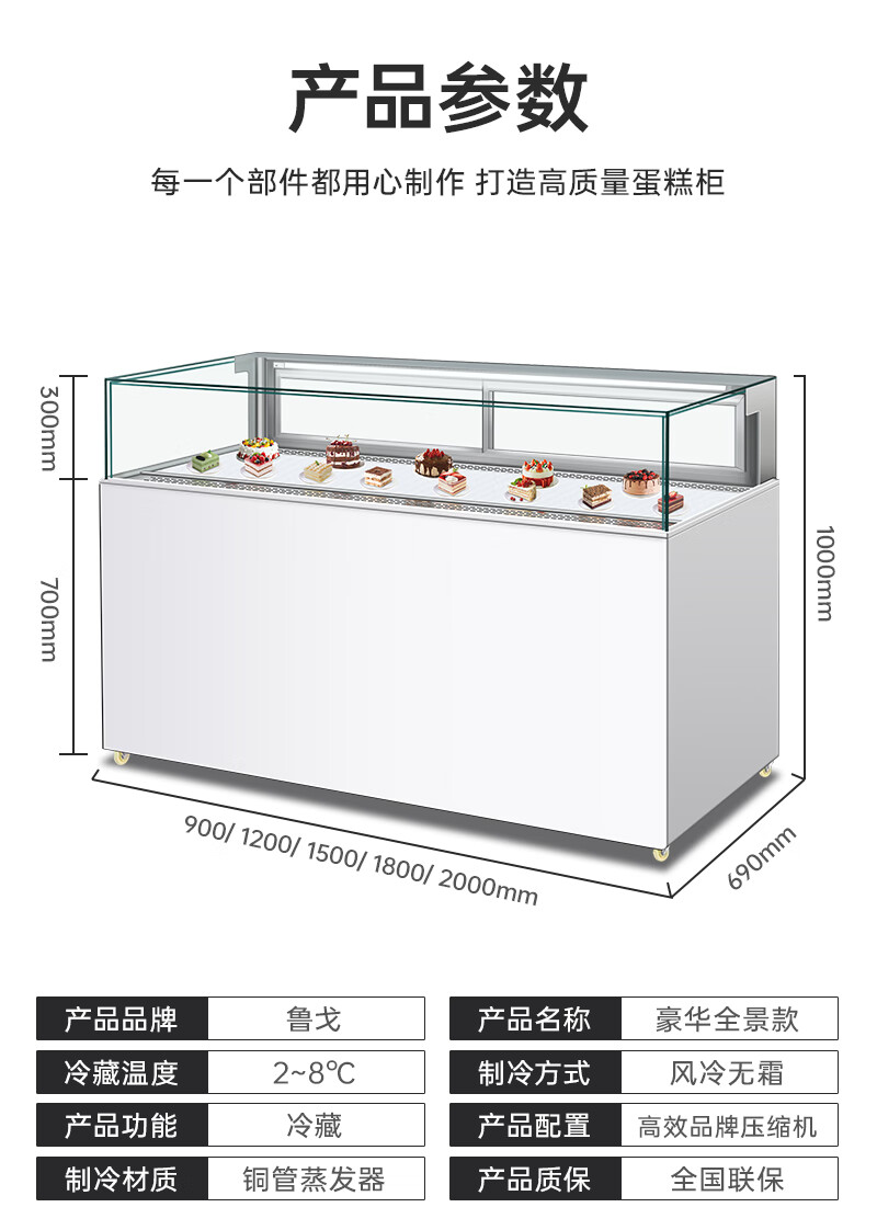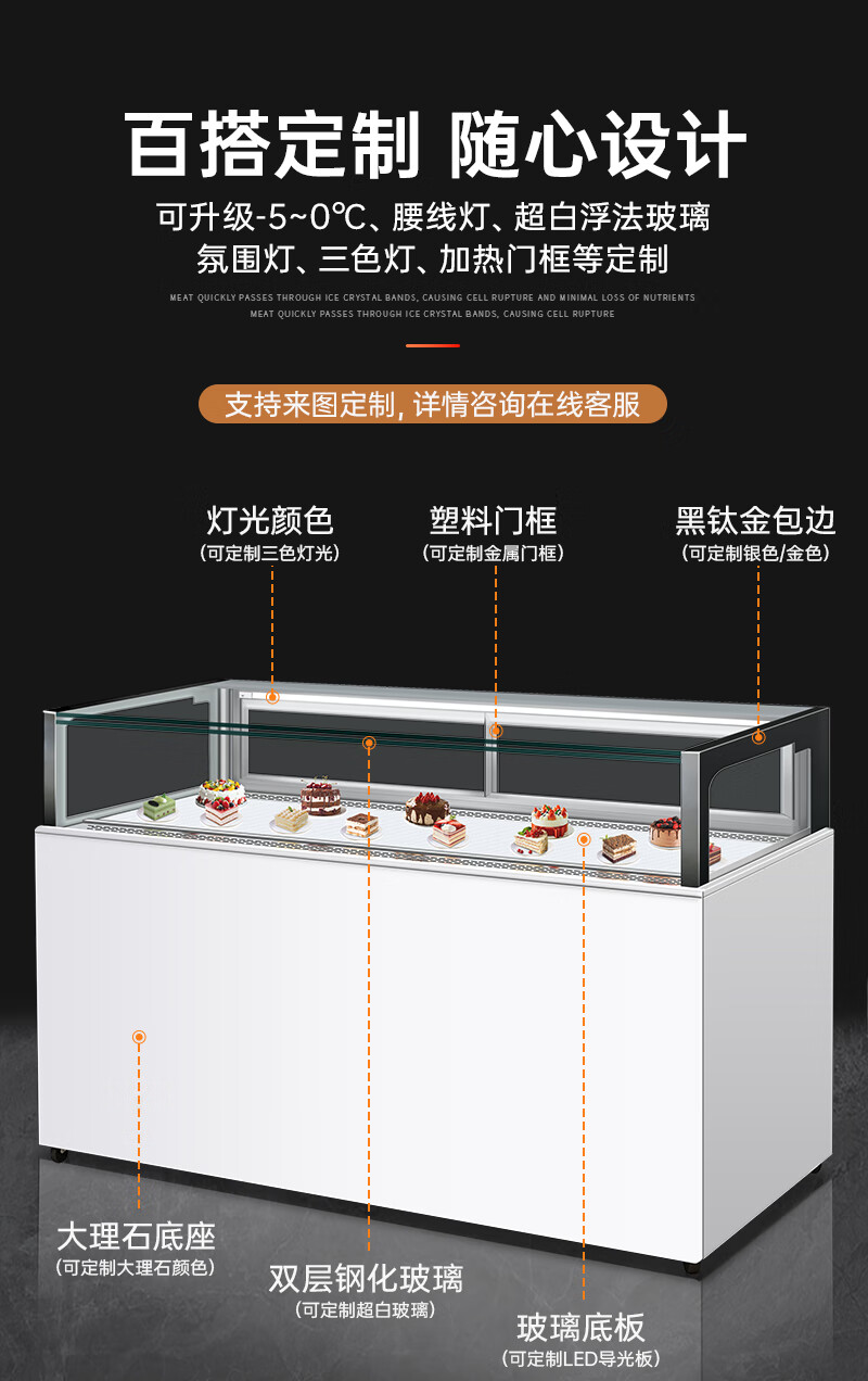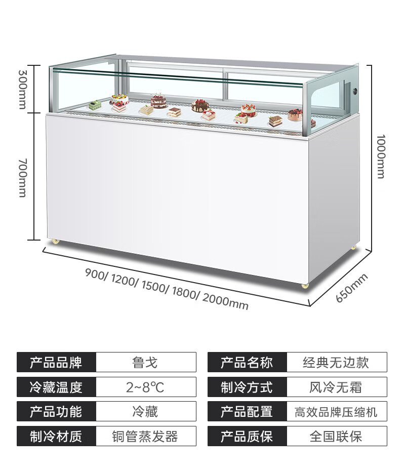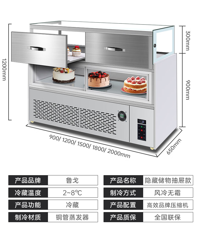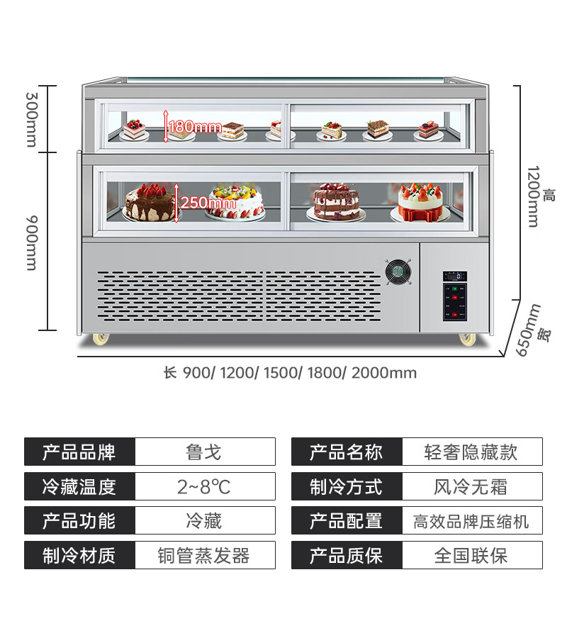Lugo Cake Refrigerated Display Cabinet Commercial Single-layer Western Pastry Dessert Mousse Wind Freezer Fruit Milk Tea Fresh Refrigerator Cold Dish Braised Vegetable Duck Neck Glass Display Cabinet Hidden Cold Savings High Cost-Effective (Color Optional) Length 1.2 Meters