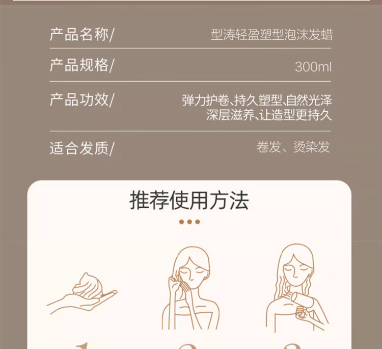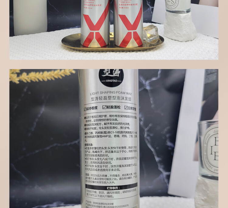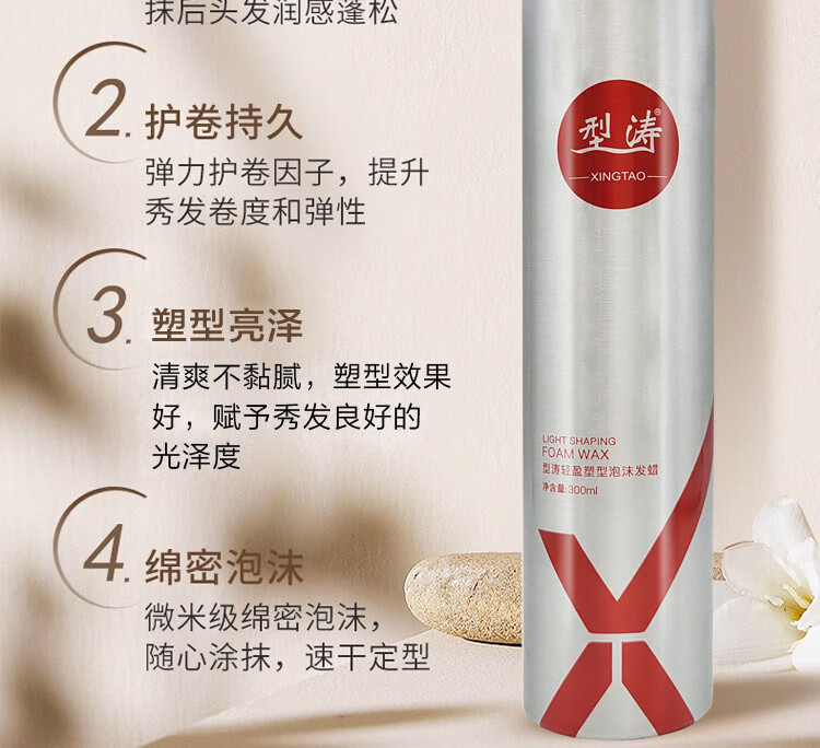 Xingtao Lightweight Shaping Foam Hair Wax Curls Refreshing, Fluffy, Long-lasting Styling, Curl Protector Elastin Increases Glossiness after Perm 2 Bottles of 300ml Foam Hair Wax
