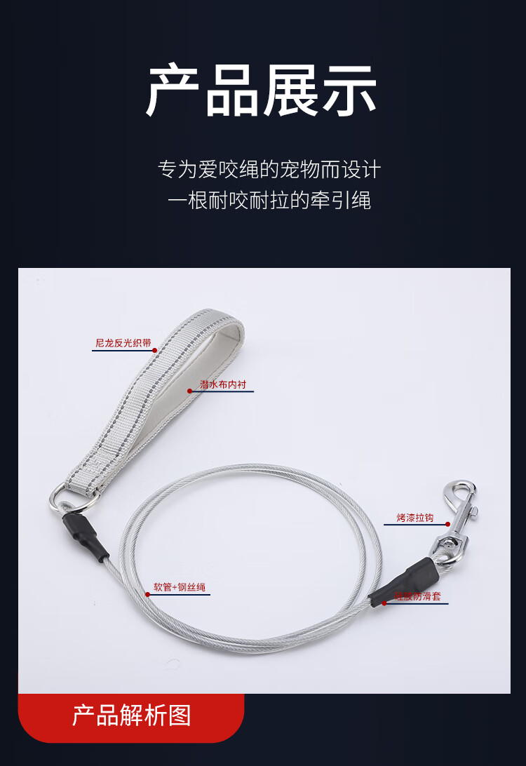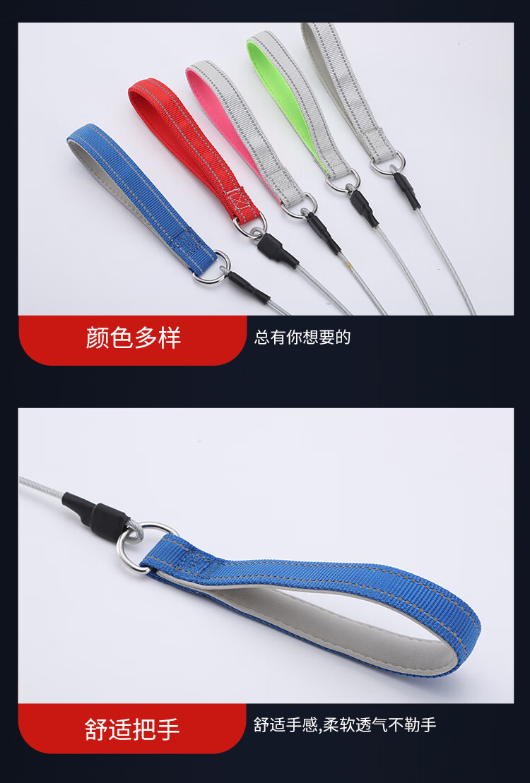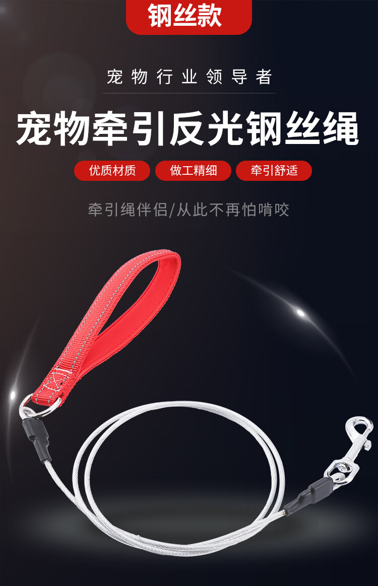 Wanle dog chain, steel wire rope, anti-biting pet traction rope, medium and large small dog leash, dog walking leash, wear-resistant (dark sea blue) 1.5 meter traction rope, single traction (no collar)
