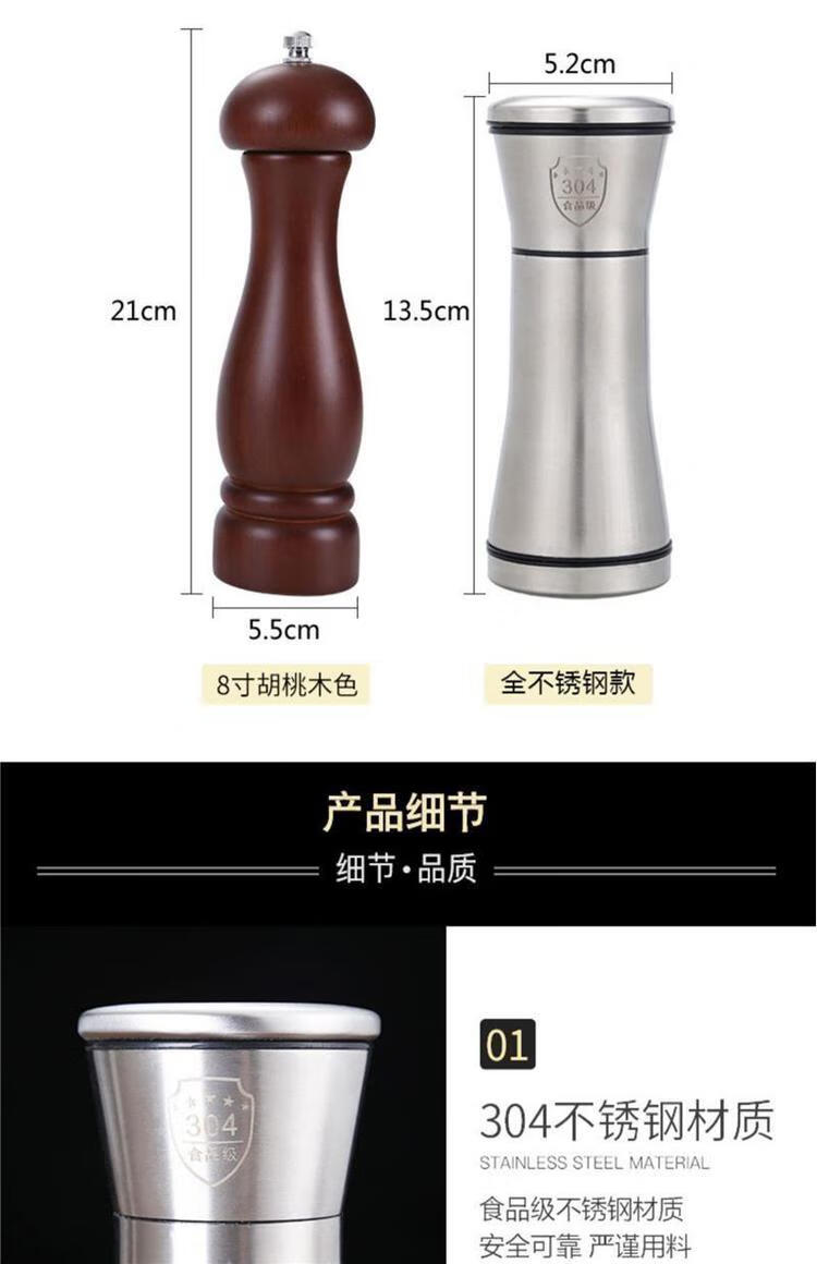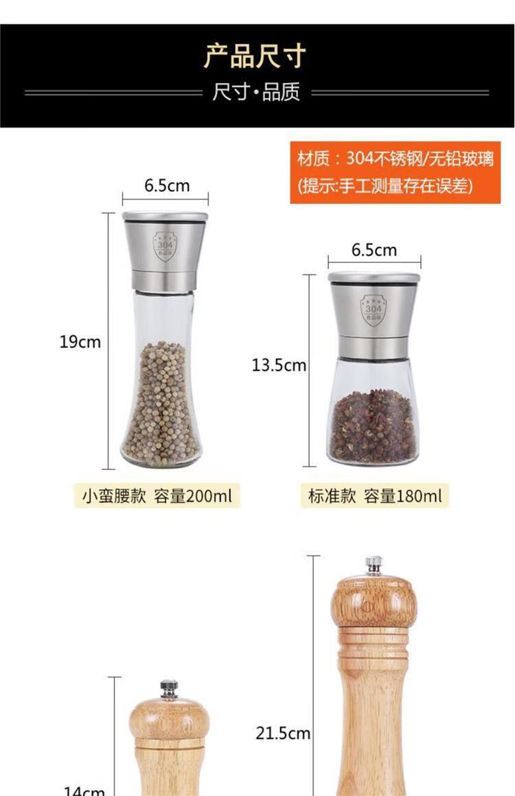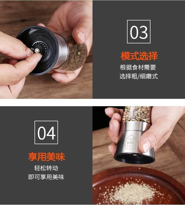 Fengyi pepper grinder manual peppercorns sea salt grinding bottle black and white pepper grinding artifact seasoning bottle kitchen tall 304 head + ABS bottom