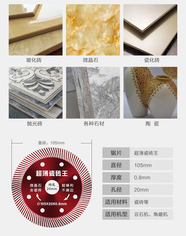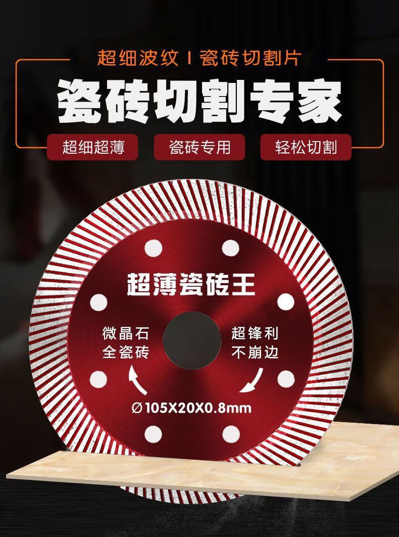 Non-rabbit ceramic tile cutting blade without chipping edge vitrified tile marble diamond ceramic cutting machine grinder special saw blade ultra-thin red piece 0.8 ultra-thin 5 piece never chipping porcelain red piece