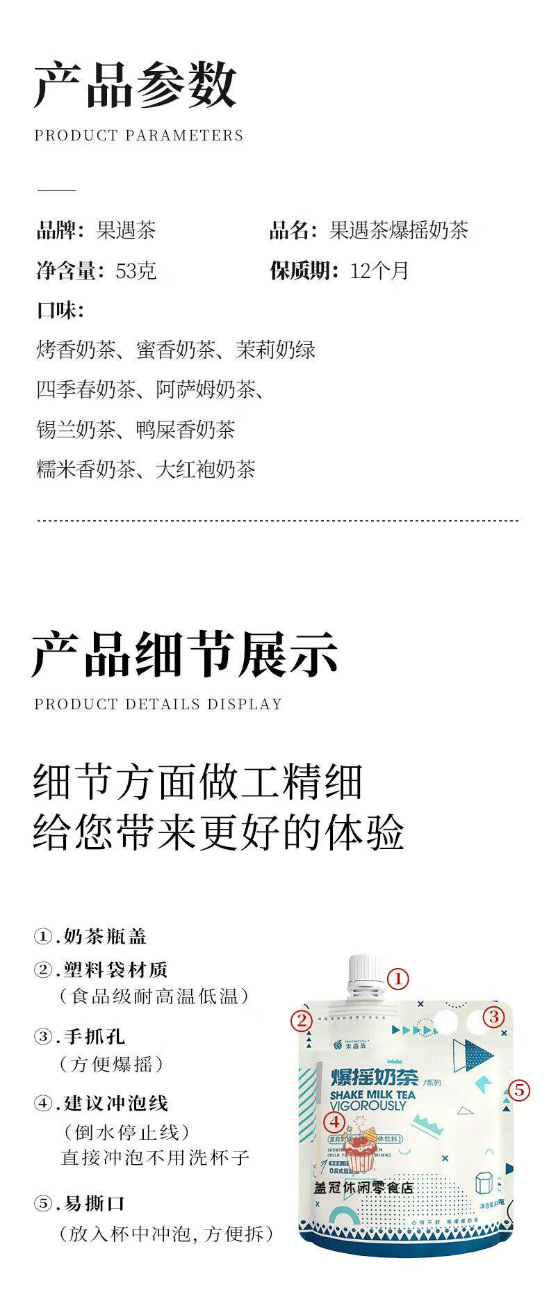 Fruit meet tea (fruit meet tea) official milk tea Assam jasmine four seasons spring milk tea bag hand-made diy milk tea drink jasmine milk green 53g*3 pieces
