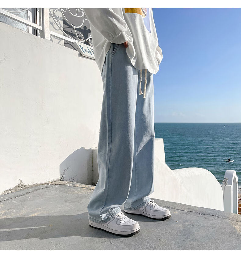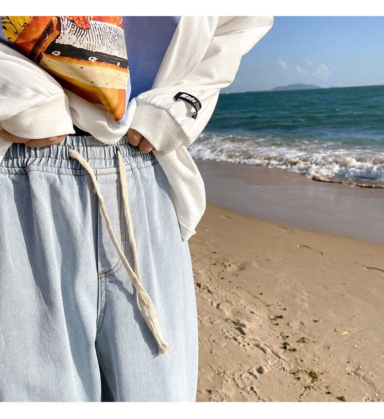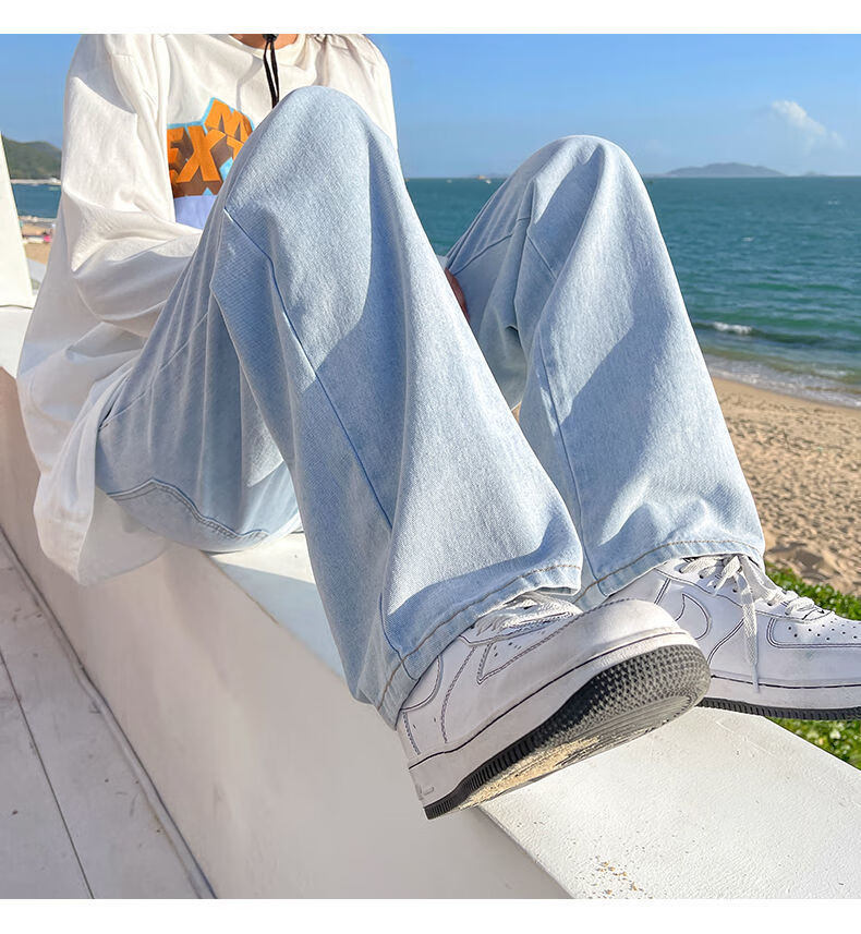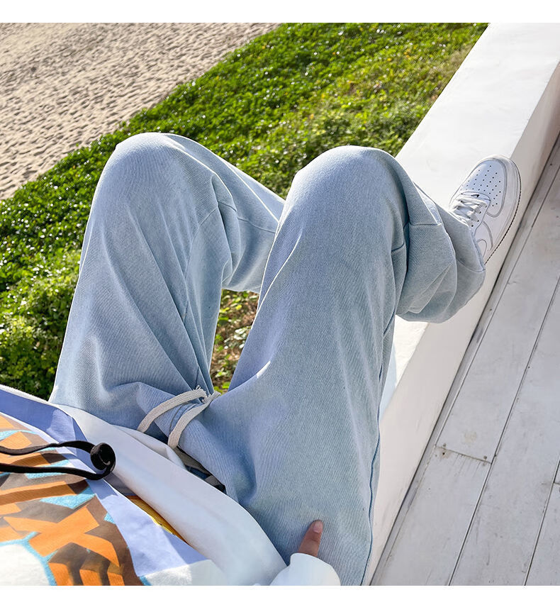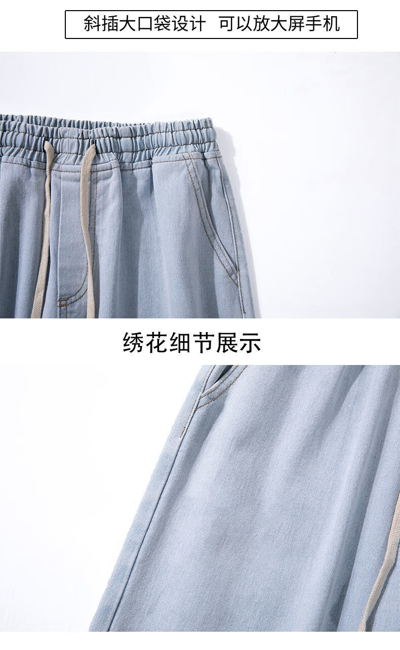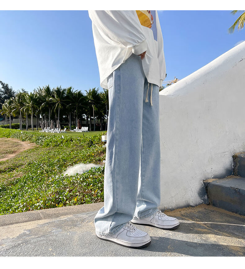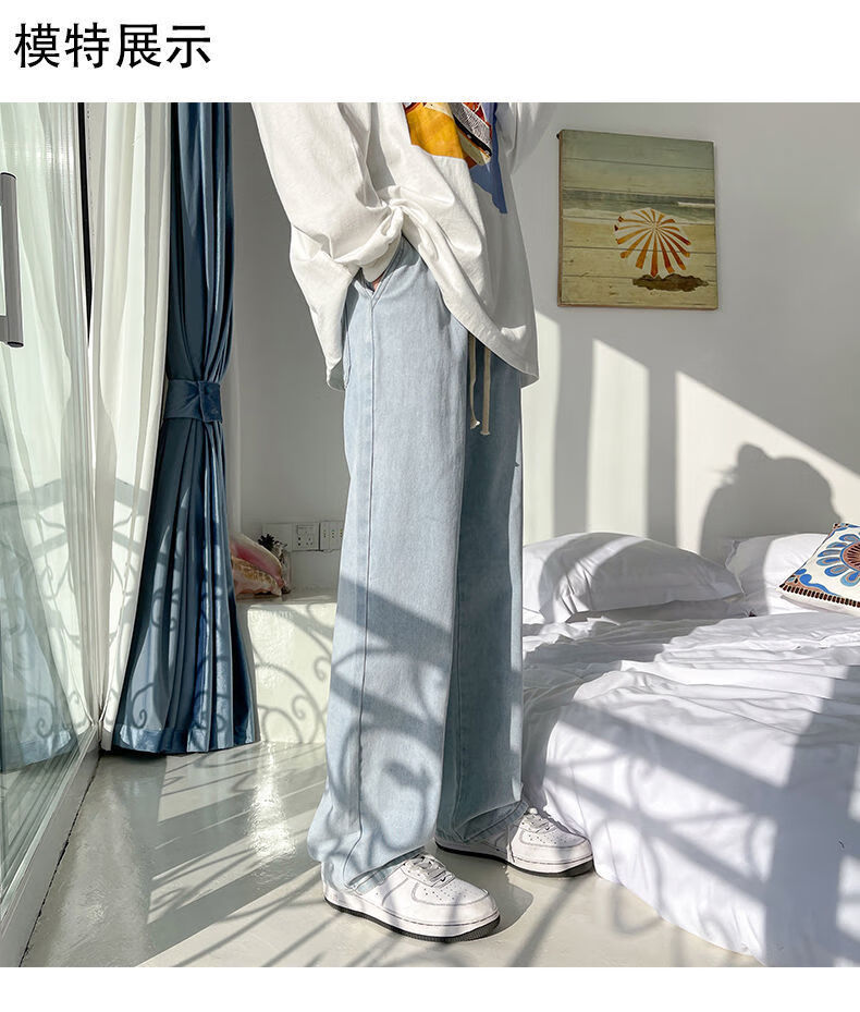 Chenxingzhe jeans men's casual pants men's high street straight loose summer spring and autumn workwear American wide-leg long pants main recommendation light blue drawstring style XL