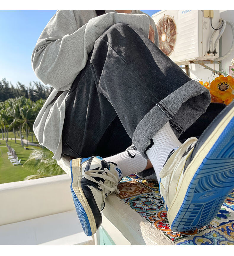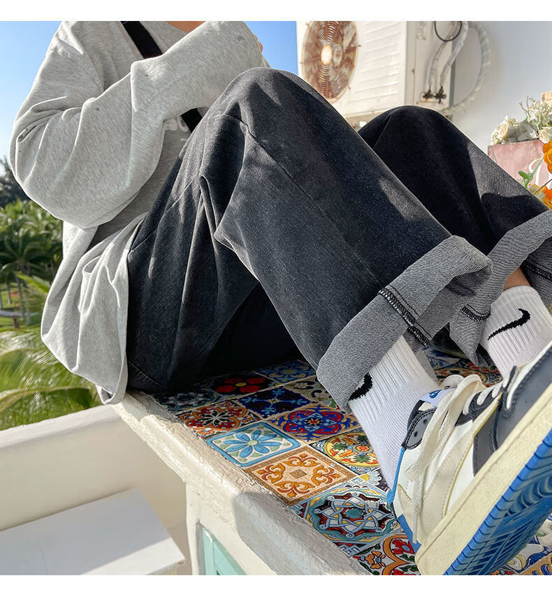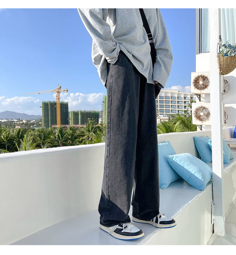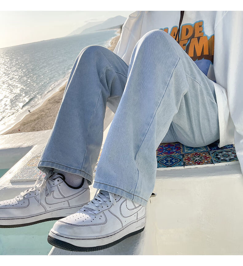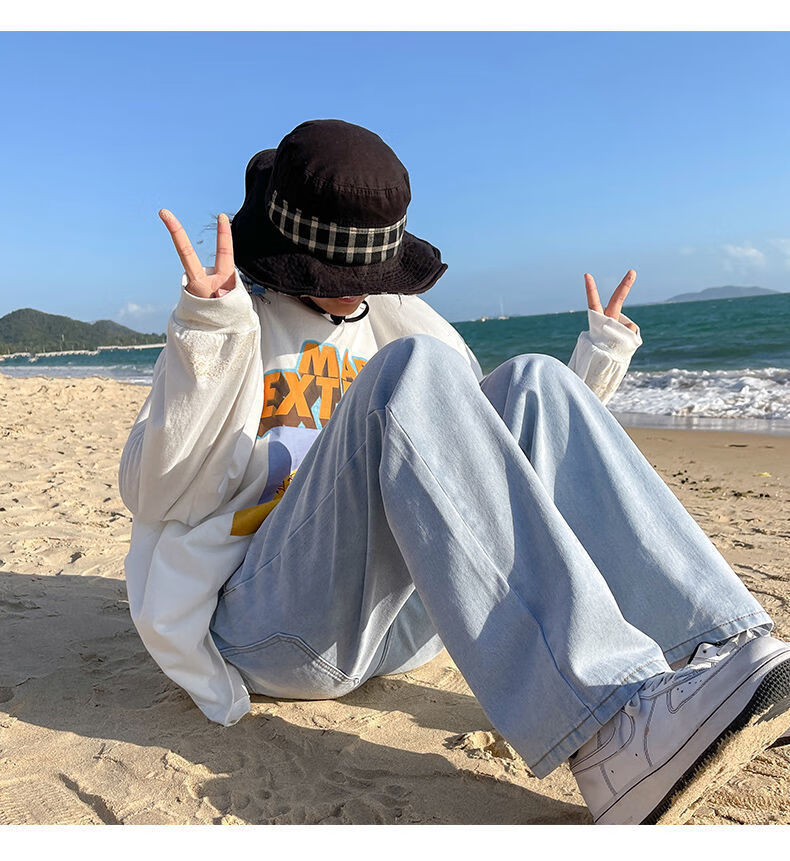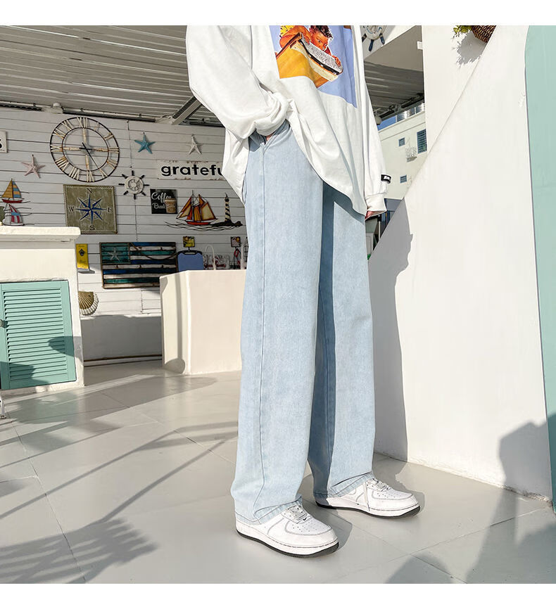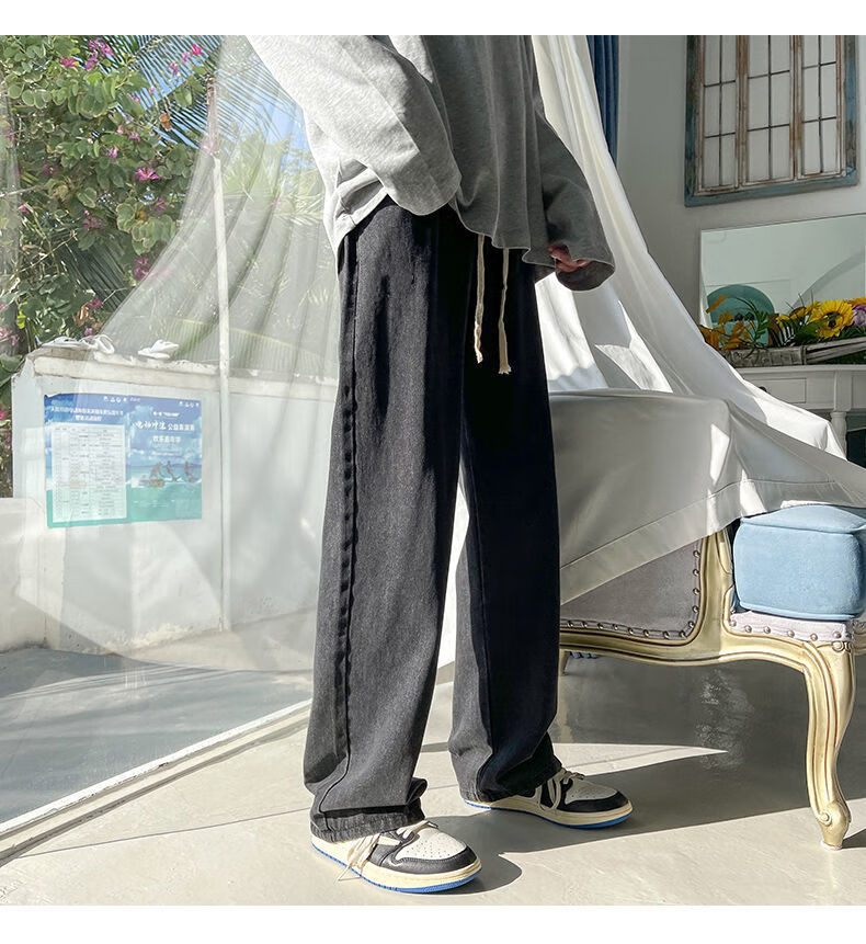 Chenxingzhe jeans men's casual pants men's high street straight loose summer spring and autumn workwear American wide-leg long pants main recommendation light blue drawstring style XL