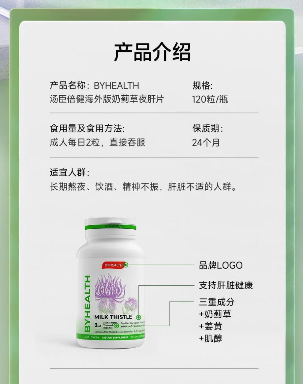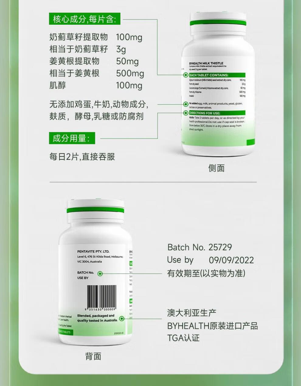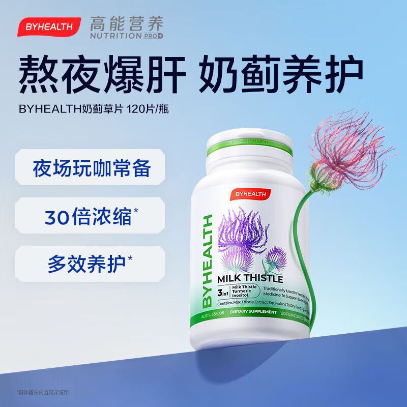 BYHEALTH BYHEALTH Milk Thistle Tablets Awakening the Liver Tablets Night Liver Tablets Stay Up Late to Relieve Nerves Anti-Counterfeiting Two Bottles