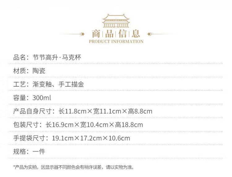 The Forbidden City culture is rising day by day, mug, tea cup, ceramic cup, water cup, Forbidden City cultural and creative birthday gift for men, gradient color 330ml 1 piece