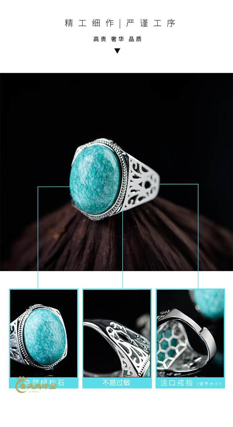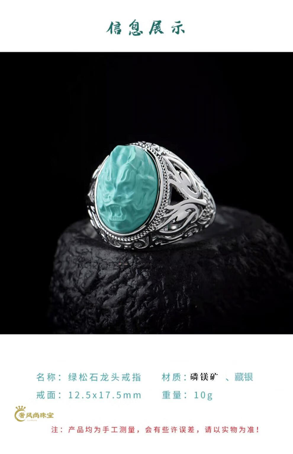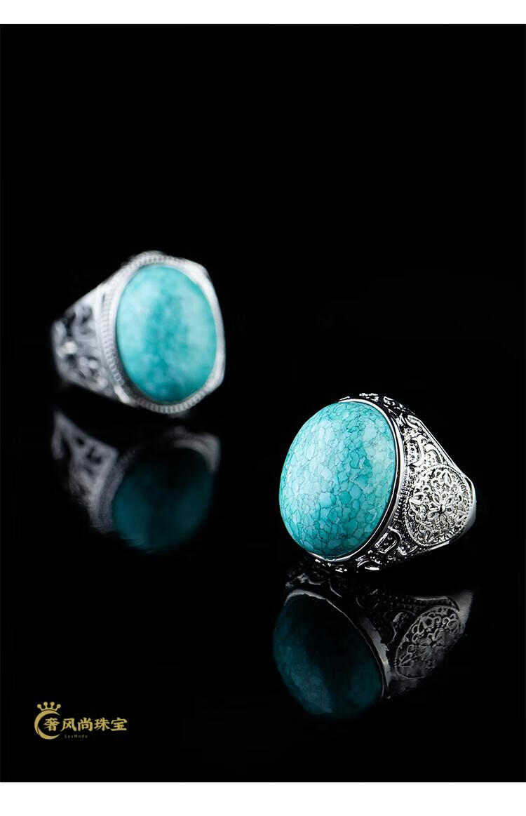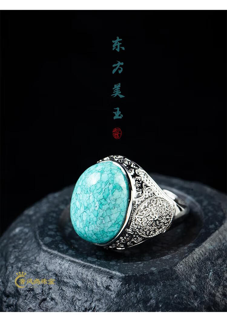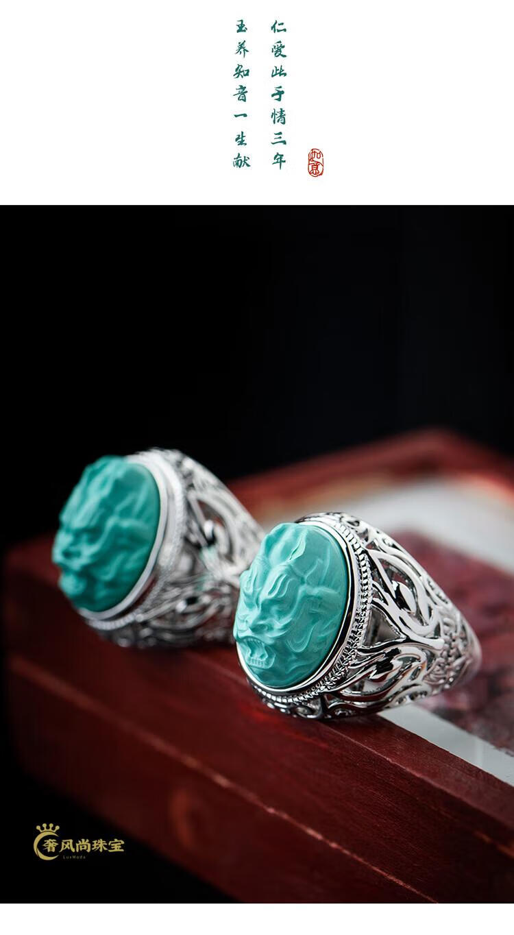 Fat Donglai's same style men's turquoise ring raw ore high porcelain silver women's domineering carved dragon head zodiac dragon ring without engraving pattern - silver holder style random