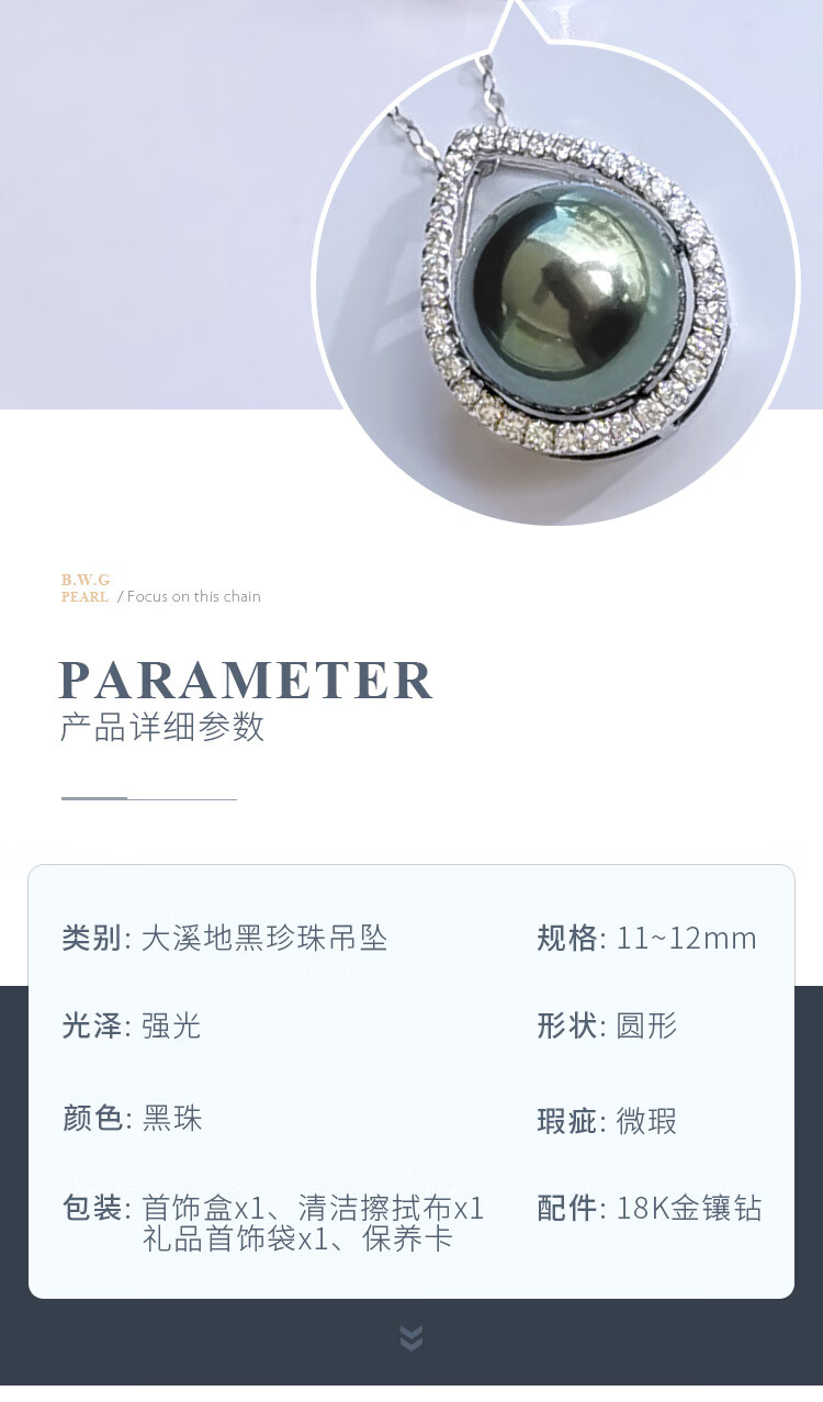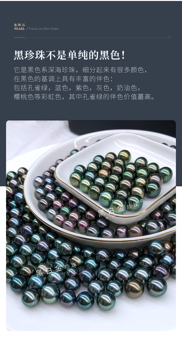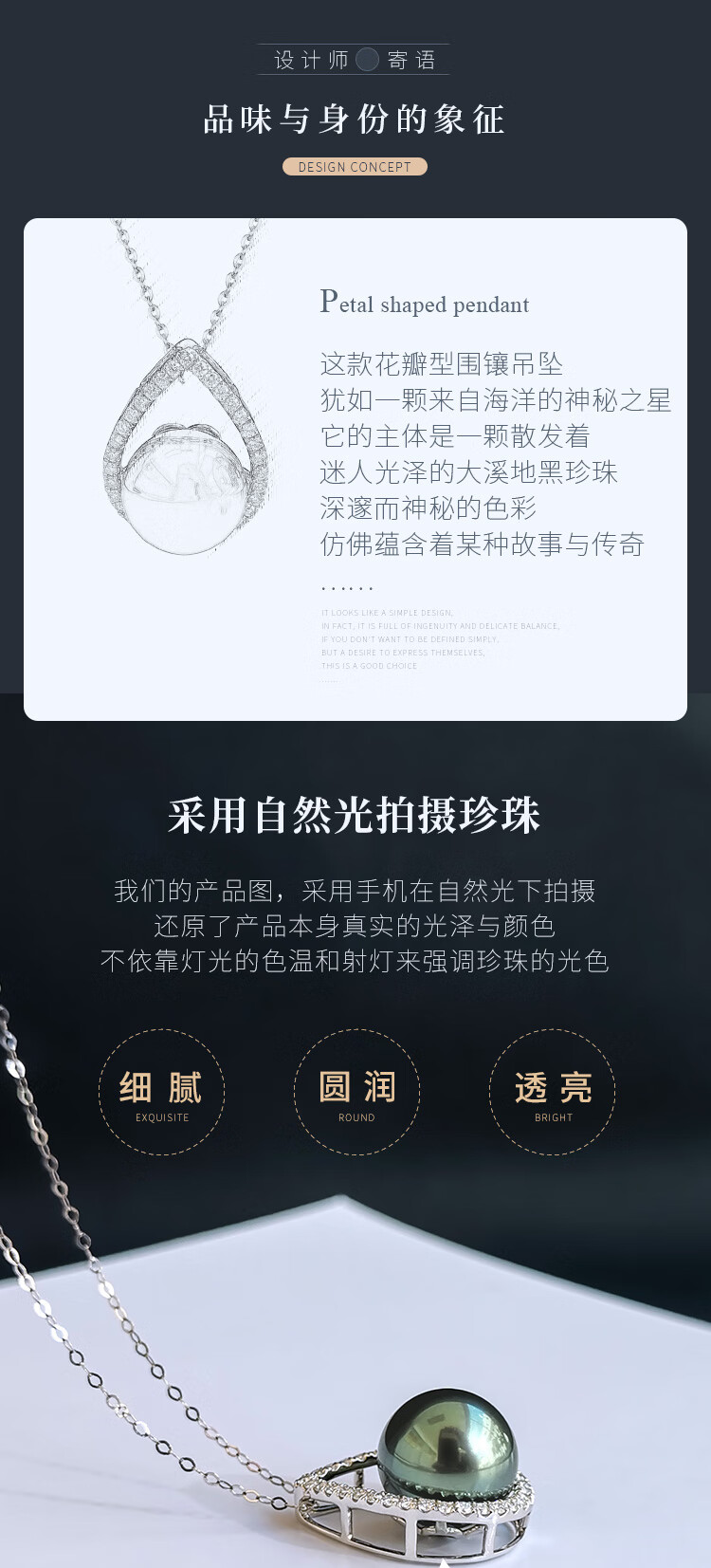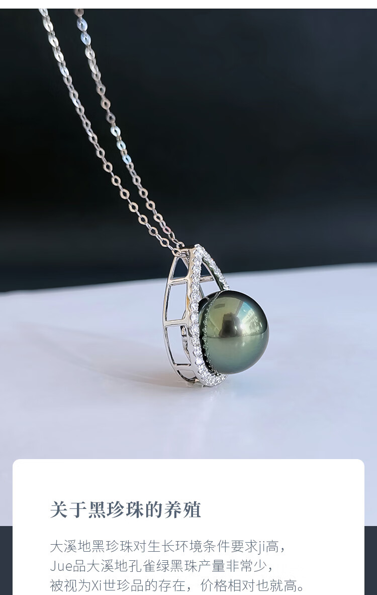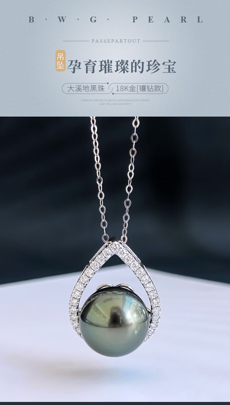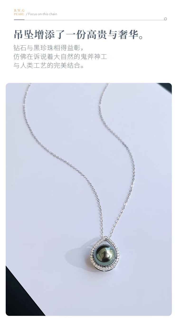 Black and white gold pearl seawater Tahitian black pearl 18K gold inlaid diamond pendant single black bead temperament chain birthday gift for others 11~12mm