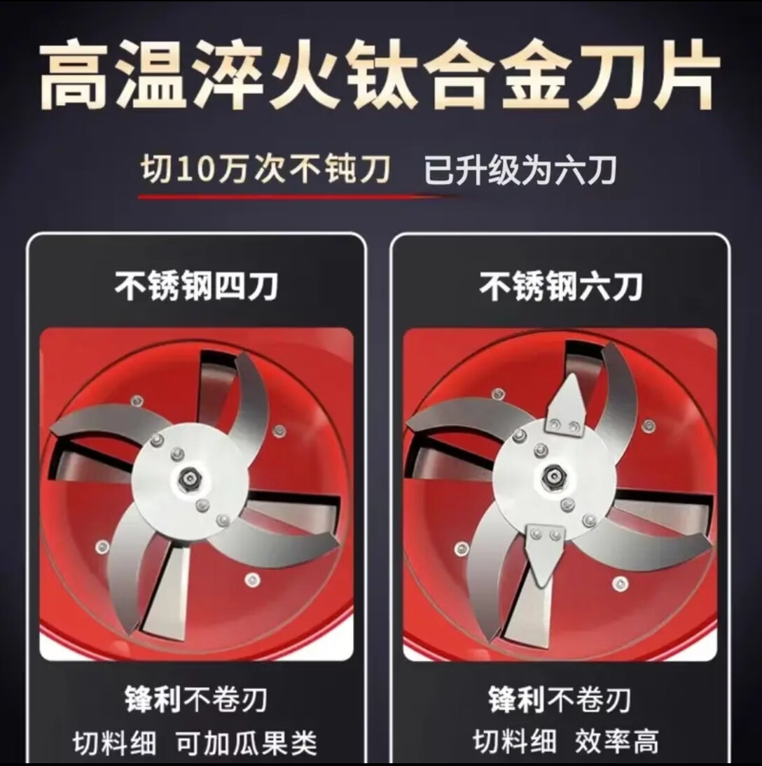 Vegetable shredder, vegetable grinder, chicken, duck and goose breeding, grass shredder, household grass cutting machine, melon and fruit crusher, pig grass machine, iron six-knife with 3kw copper core motor