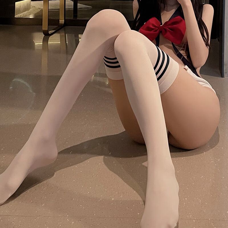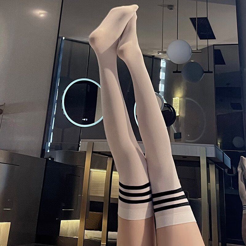 Ting'er sexy student socks over the knee stockings college style stockings polyester thick socks velvet stockings white with black stripes - spring and autumn polyester thick socks - 1 pair one size fits all (80-135Jin Jin equals 0.5kg) default privacy delivery