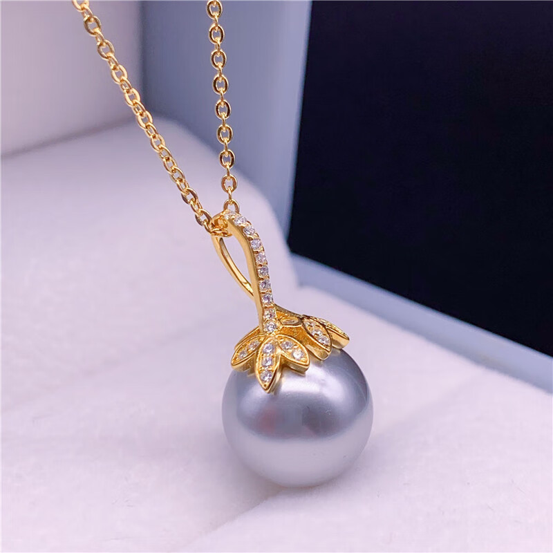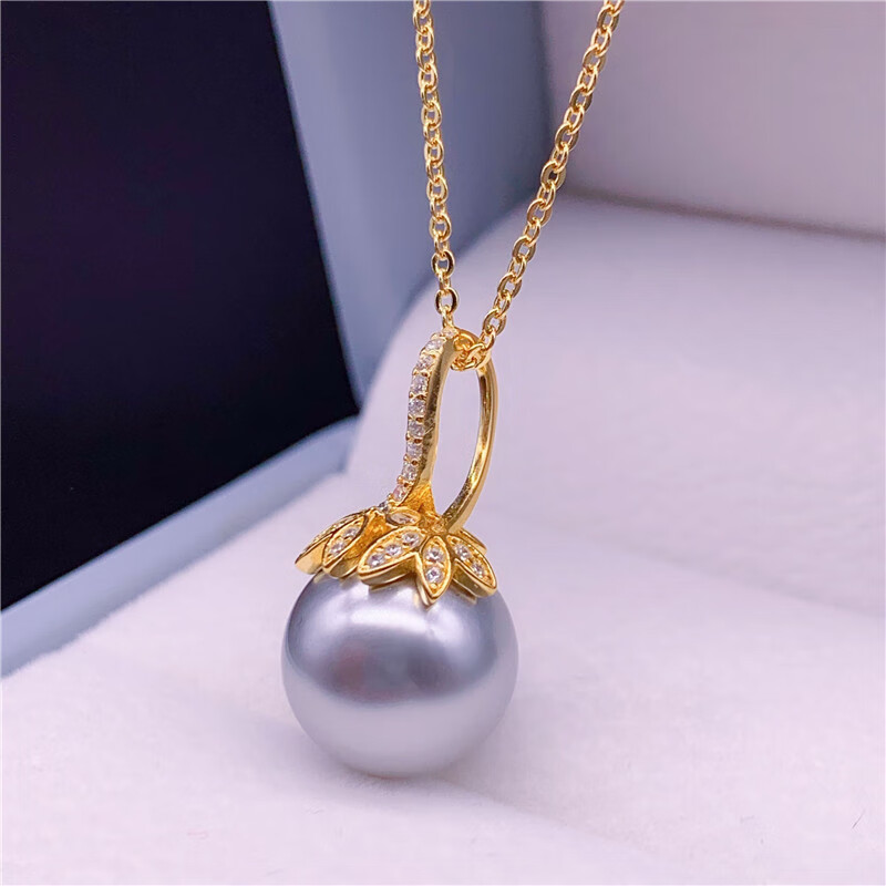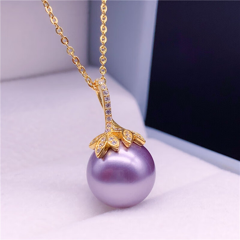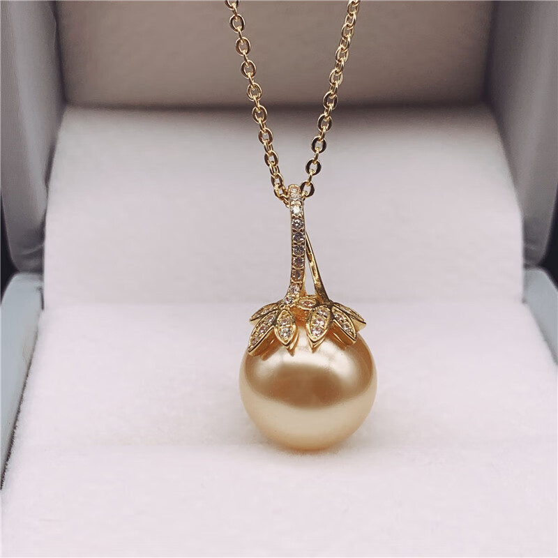 Fat Donglai's same style 18k gold freshwater pearl pendant, natural sea water powder, gift for mother, mother-in-law, gold beads 14-15mm
