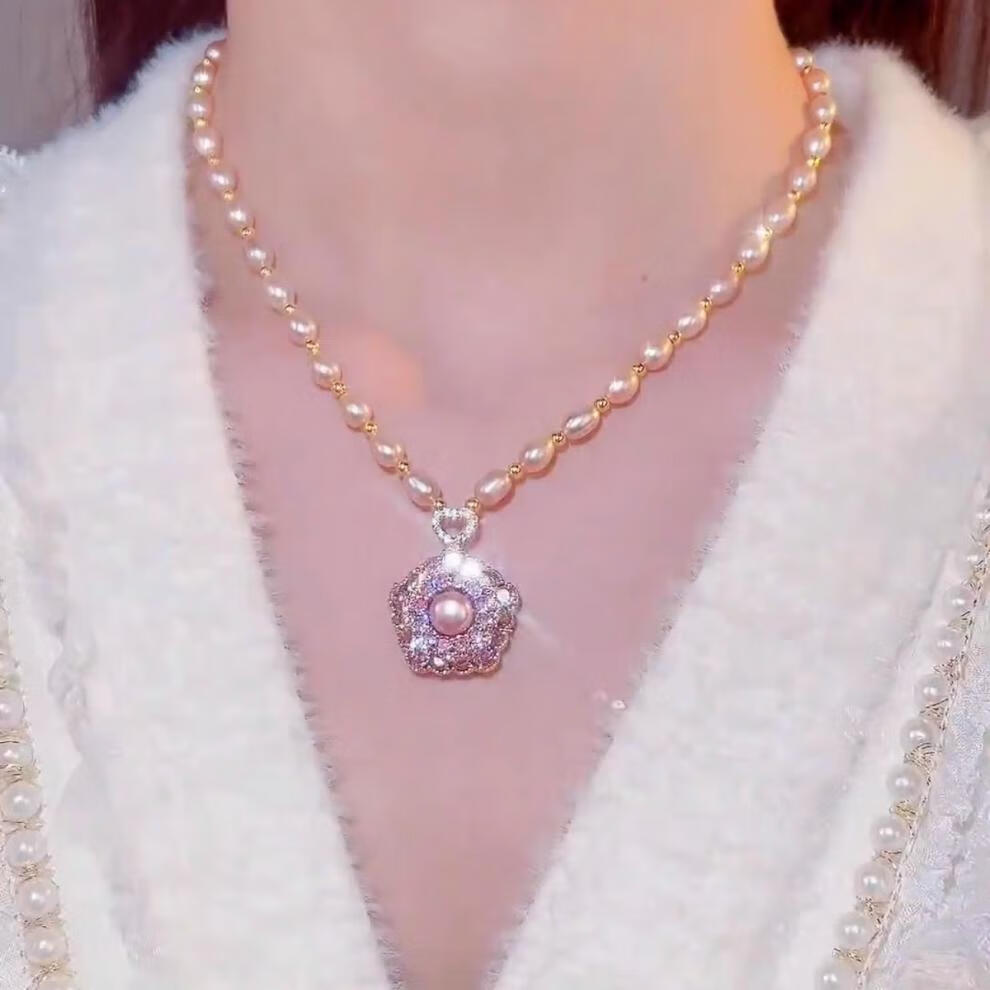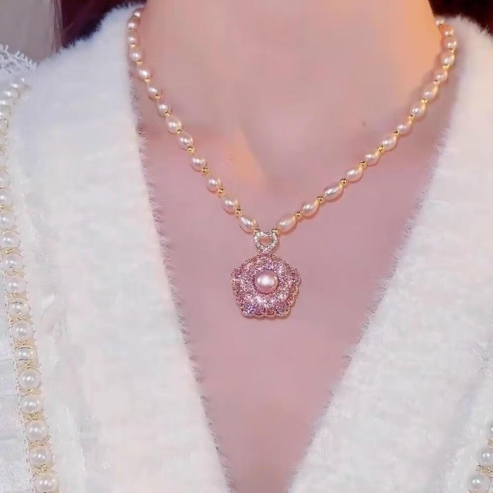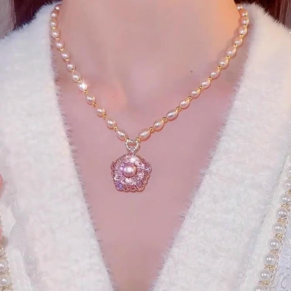 Fat Donglai's same style freshwater pearl pendant Shi Lai Chun niche design twist neck chain trendy clavicle chain Shi Lai Chun pearl necklace