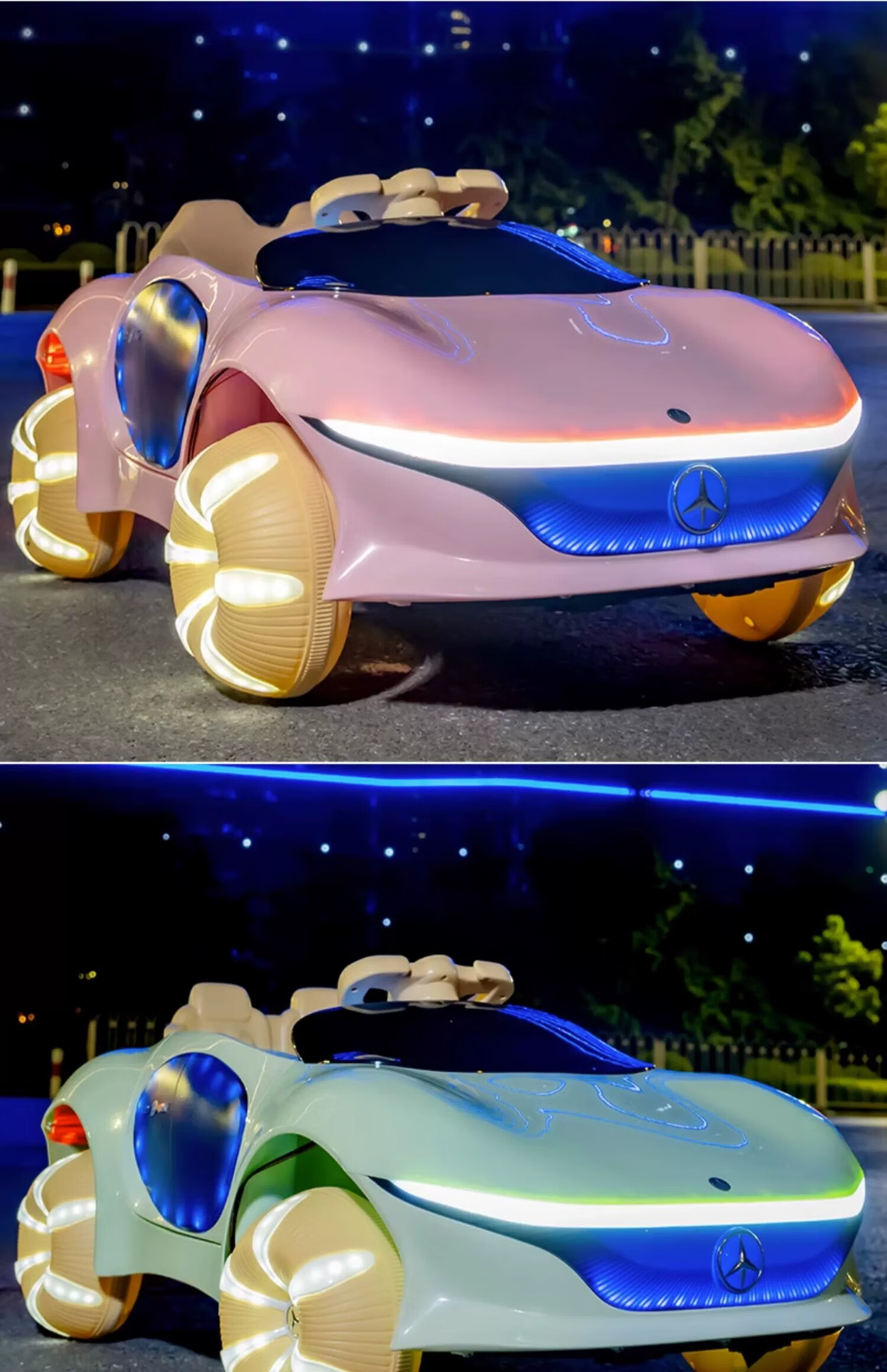 Aibei'ao children's electric car, four-wheeled, can sit on people, remote control car with swing baby toy, child's first birthday gift, girly pink, remote control + dual drive + hard seat, early education + Bluetooth + music