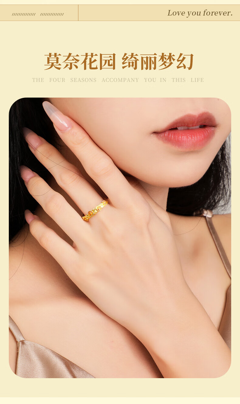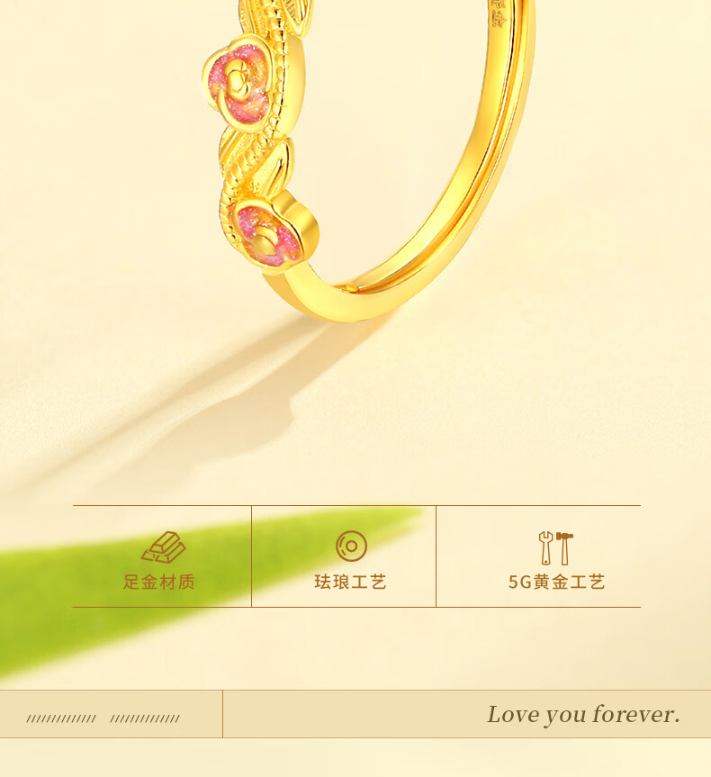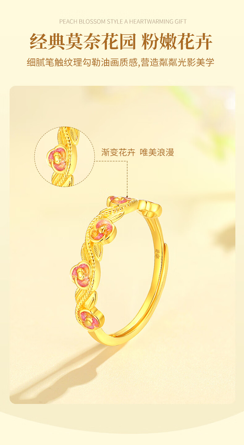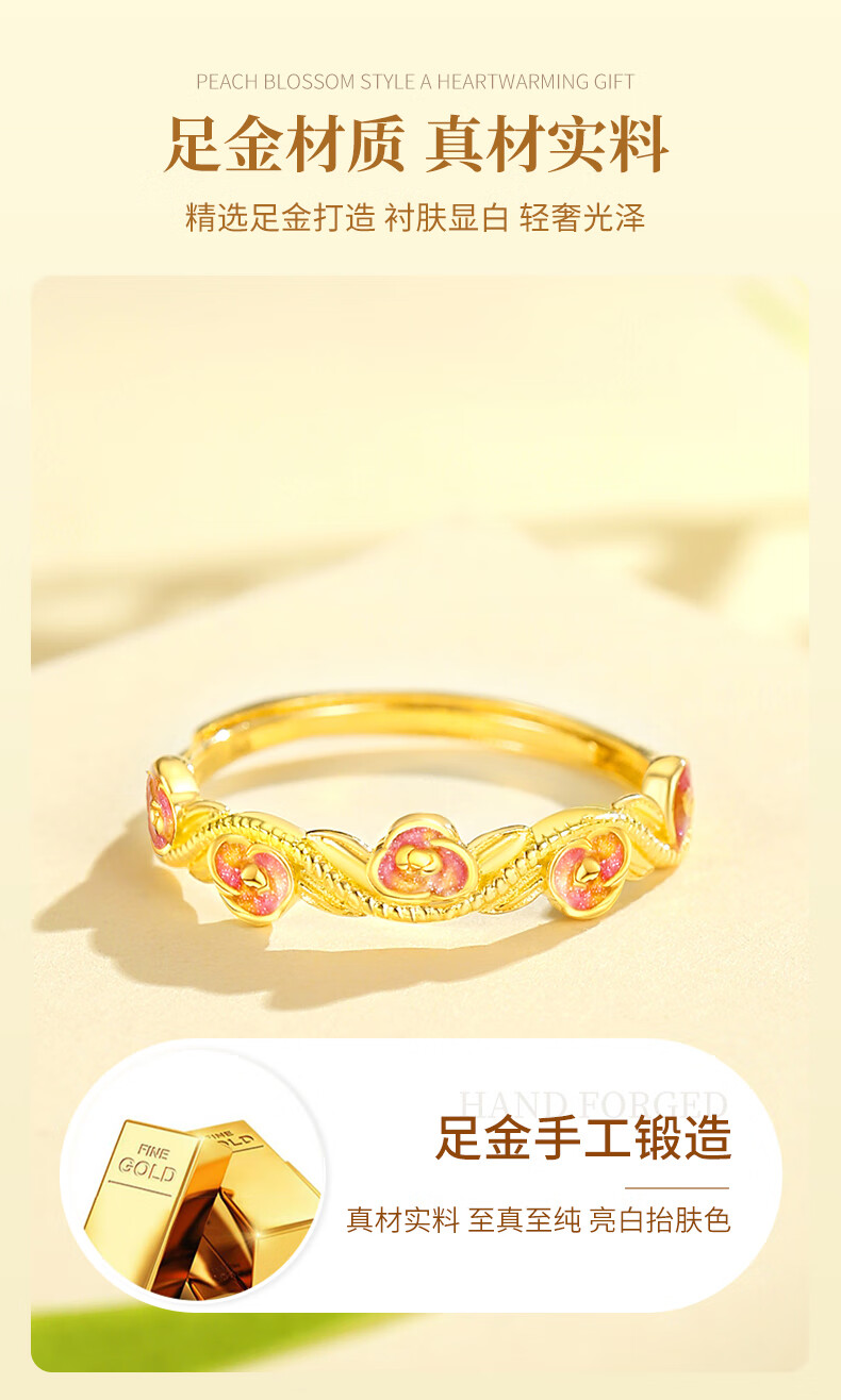 Chinese gold gold ring for women pure gold live ring ring birthday gift for girlfriend and wife birthday gift pure gold ring + gift box certificate